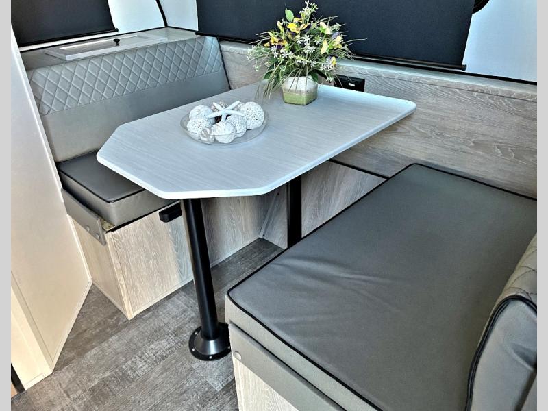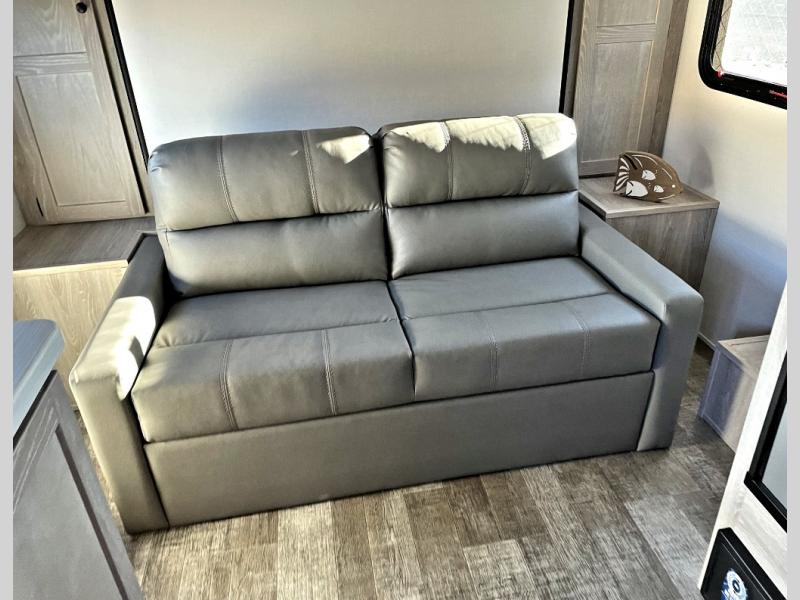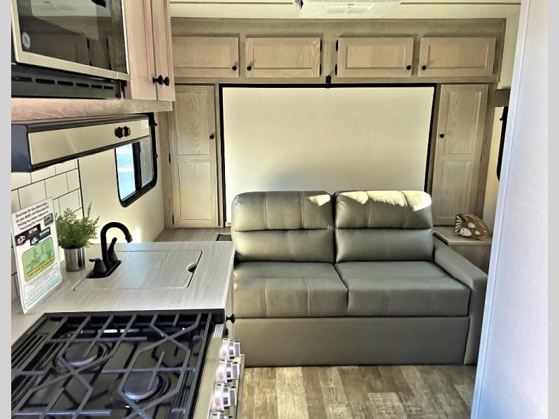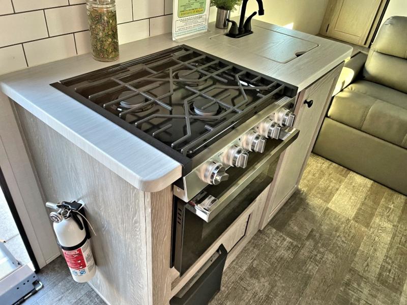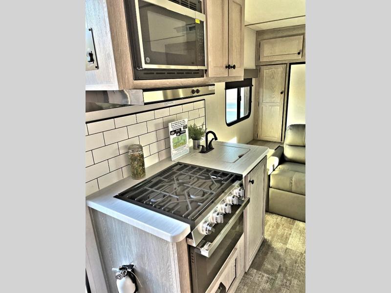 Explore the great outdoors in an Xplorer travel trailer by Riverside RV! Each model is constructed with Azdel vacuum bonded laminated walls, a powder coated chassis, and an Alpha Super Flex roof system, extending the life of your camper. There are enlarged cargo doors with slam latch and magnetic catch, solar power for off-grid capabilities, and a GE 15k roof-top A/C to keep you comfortable during the summer camping months. The off-road tires included in the Xplorer Package will let you conquer tougher terrain and the Gran Oak interior color is warm and inviting. There are also GE appliances inside, along with seamless countertops, residential backsplash, USB ports, and an FM/Bluetooth stereo to listen to your favorite tunes.