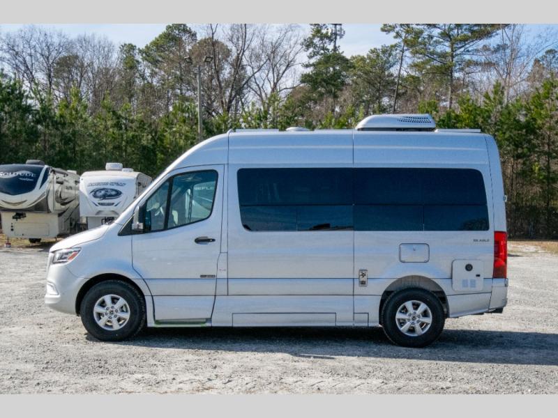 The exterior of the SS Agile includes sleek styling, clean lines, large windows, and various color options. Built on the 144” long wheelbase of the short Mercedes Sprinter Chassis, it provides adequate space for RVing needs while maintaining ease of driving, parking, and good fuel economy.