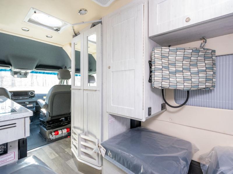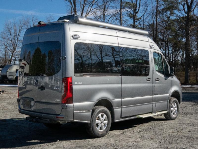 The exterior of the SS Agile includes sleek styling, clean lines, large windows, and various color options. Built on the 144” long wheelbase of the short Mercedes Sprinter Chassis, it provides adequate space for RVing needs while maintaining ease of driving, parking, and good fuel economy.