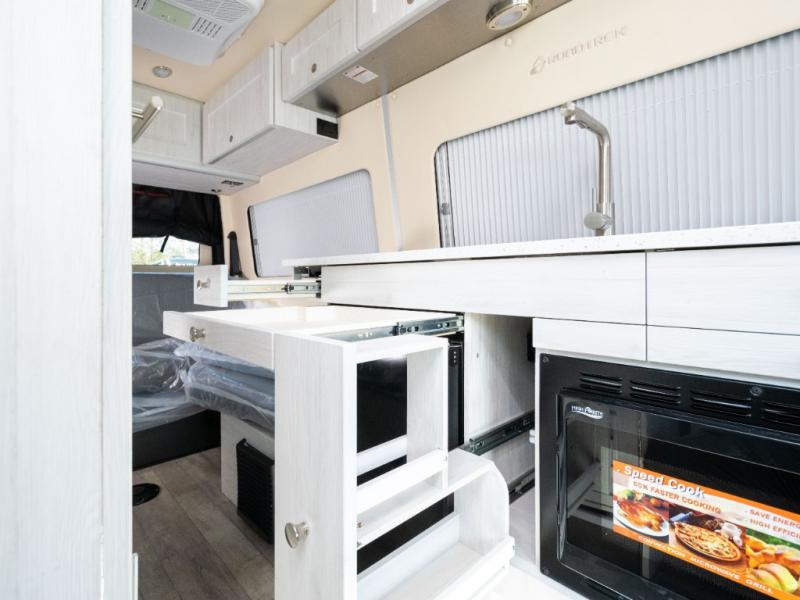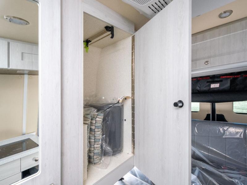 The bright and spacious interior of the SS Agile has an open concept galley, leaving the driver’s side free from gables or cabinets, allowing large windows to fill the interior with natural light. It offers well-crafted fabrics and finishes in several style options, enabling customization to suit personal preferences.