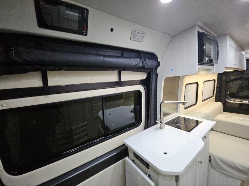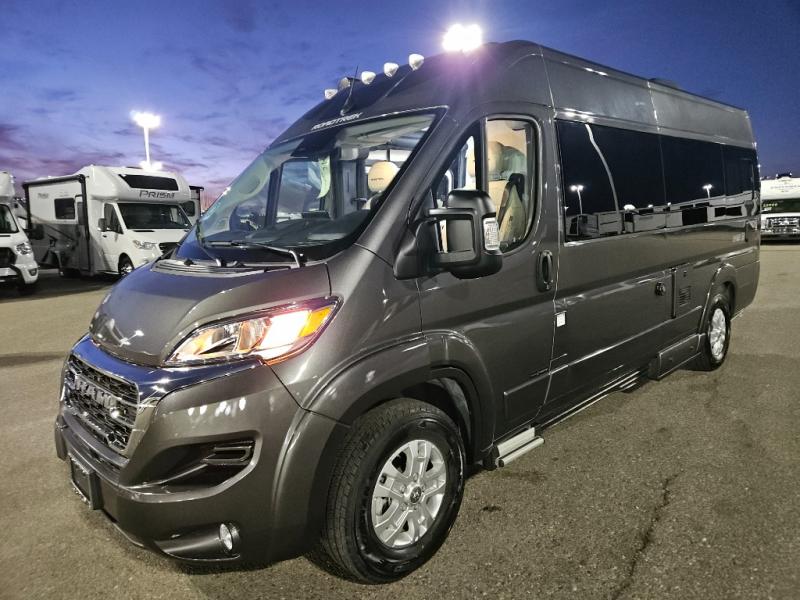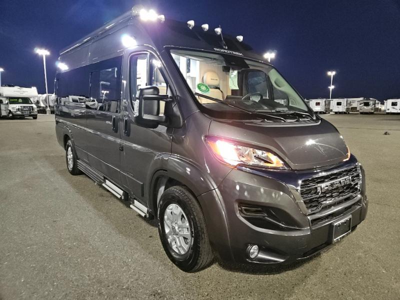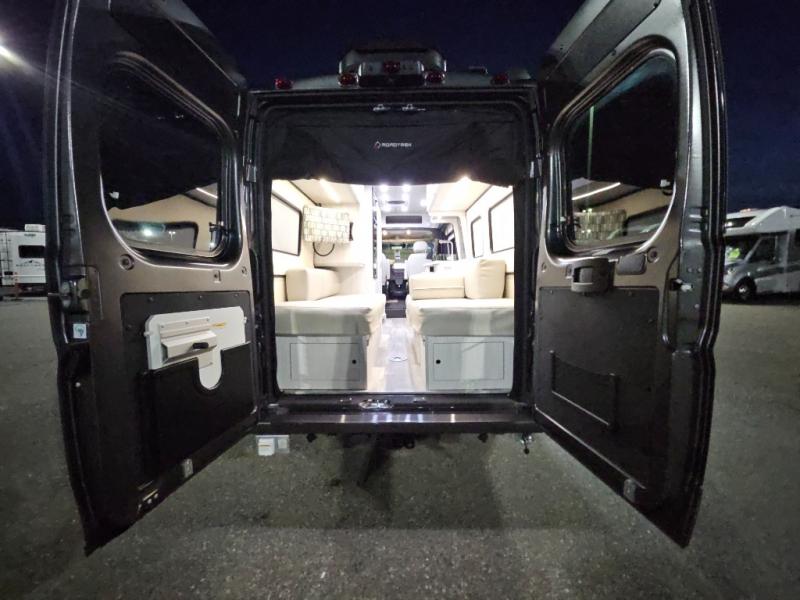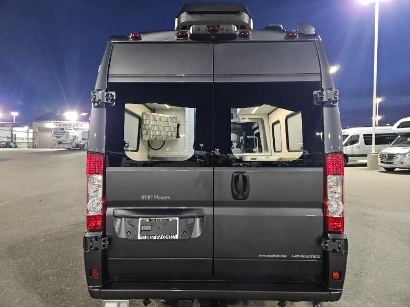 The Roadtrek Class B gas motorhomes are built upon the stylish Ram ProMaster 3500 chassis with a 3.6L V6 gas engine to power your trips near and far. The Uconnect 5 HD radio with Apple Car Play and Android Auto will make the drive just as sweet as the destination. Each model includes a 12V refrigerator, a two-burner recessed propane stove with a flush cover and built-in igniter, and ample storage space for all your belongings. The Firefly coach control system monitors the water, propane, battery charge levels, battery disconnect, and generator hour meter for your convenience. There are even solar panels to go off the grid, an outdoor shower to rinse the dirt off your feet before entering inside, and a retractable awning to protect you rain or shine. Come find your favorite one today!