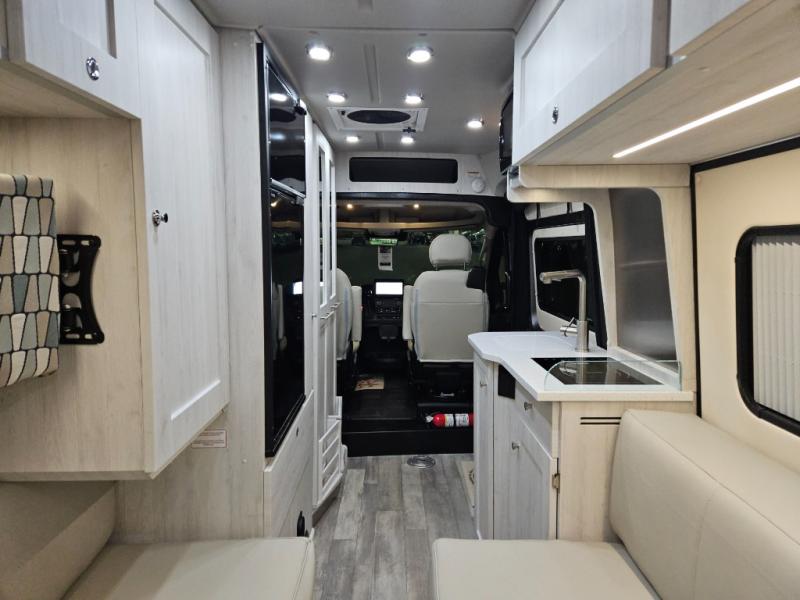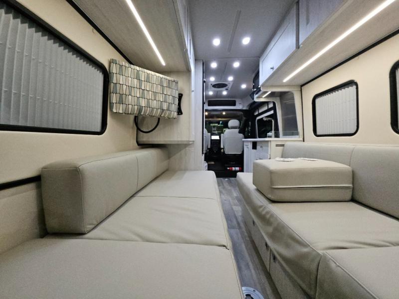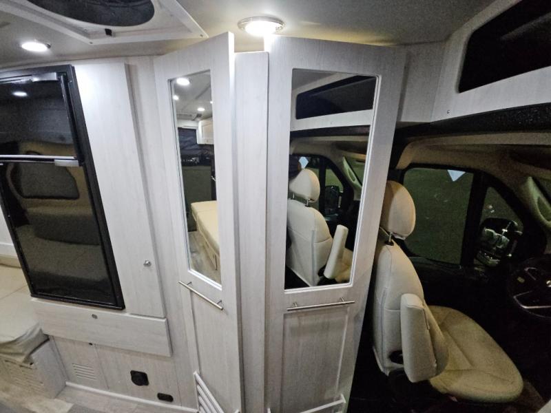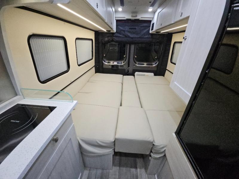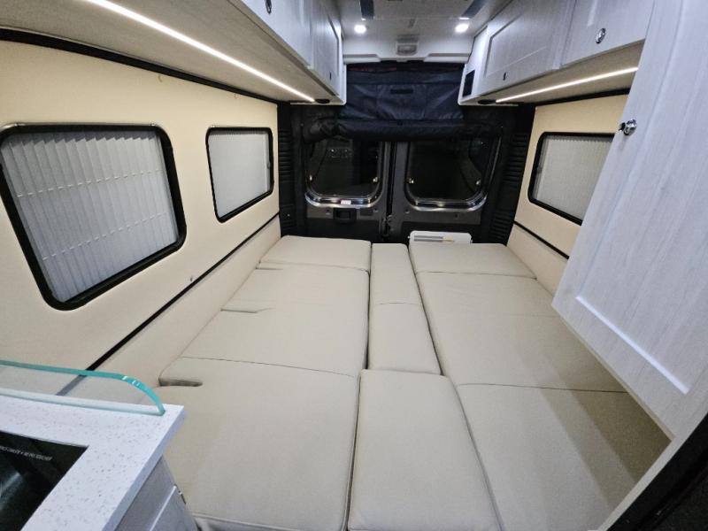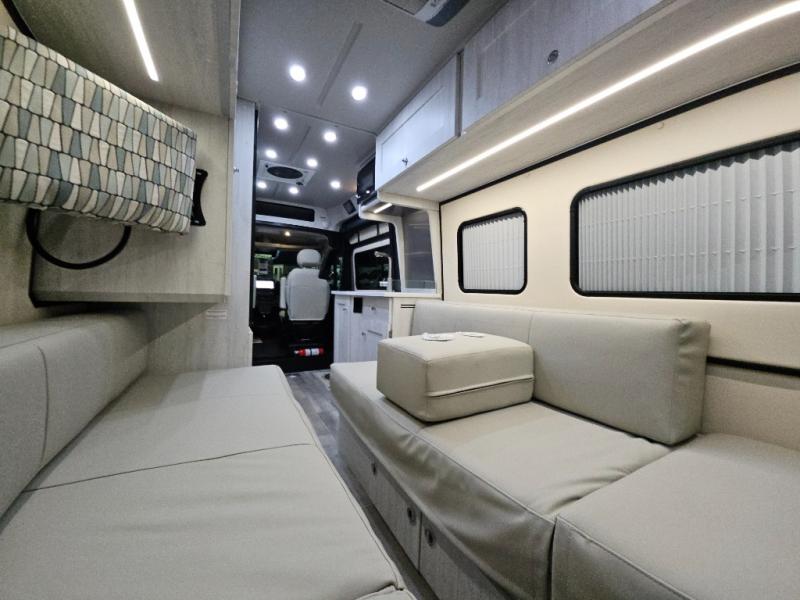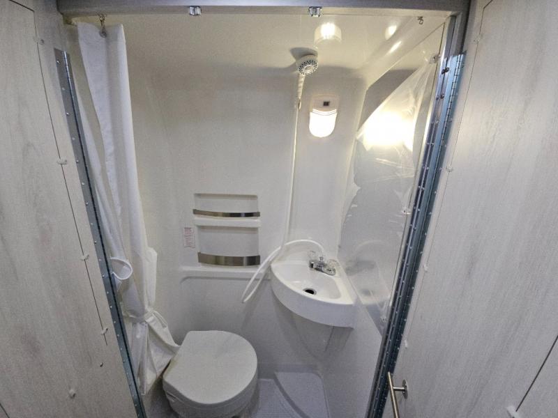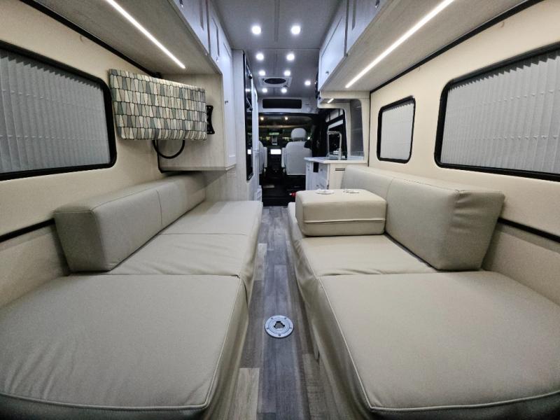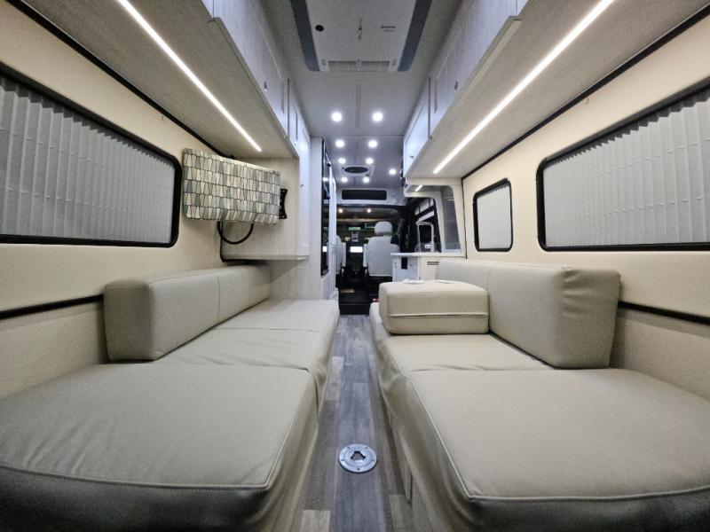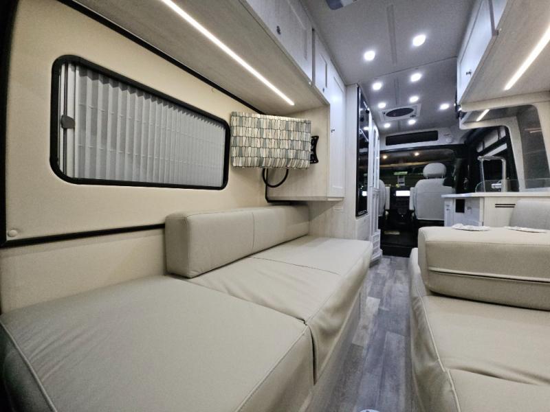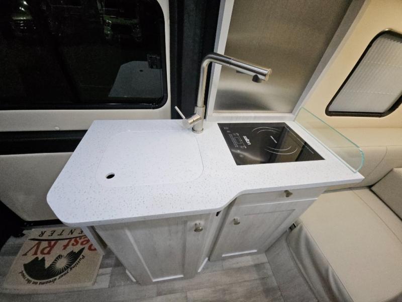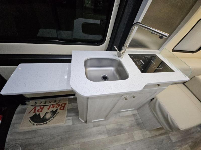 Chase your outdoor excursions in this comfortable motorhome for two! You will find side-facing rear power sofas that can convert to twin beds or a king-size bed for your comfort. If you're needing more sleeping space, just add the optional folding mattress for the front captain's seats! You can prepare at-home meals in the galley that features a two-burner propane stove, a 5-cu. ft. refrigerator, plus a counter extension with a charging station for your tablet or phone. After you've freshened up in the convenient wet bath, head outdoors for the day to enjoy the sunshine. When you return, you can make popcorn in the microwave oven and watch a movie on the 24" Smart TV!