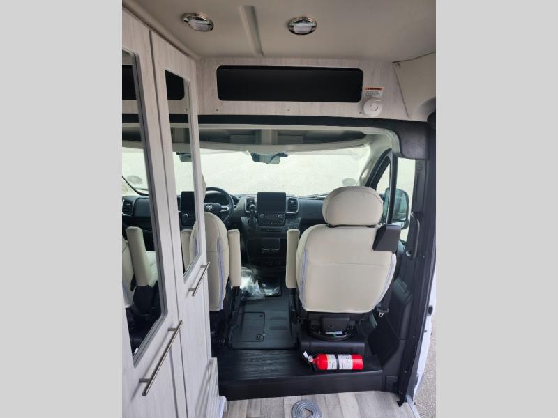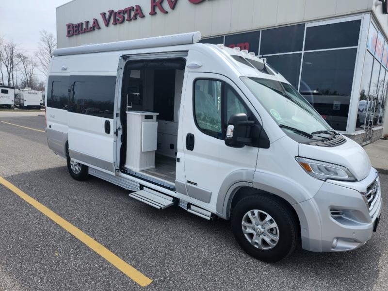 The Roadtrek Class B gas motorhomes are built upon the stylish Ram ProMaster 3500 chassis with a 3.6L V6 gas engine to power your trips near and far. The Uconnect 5 HD radio with Apple Car Play and Android Auto will make the drive just as sweet as the destination. Each model includes a 12V refrigerator, a two-burner recessed propane stove with a flush cover and built-in igniter, and ample storage space for all your belongings. There are even solar panels to go off the grid, an outdoor shower to rinse the dirt off your feet before entering inside, and a retractable awning to protect you rain or shine. Come find your favorite one today!
