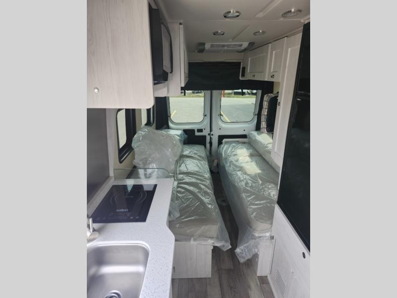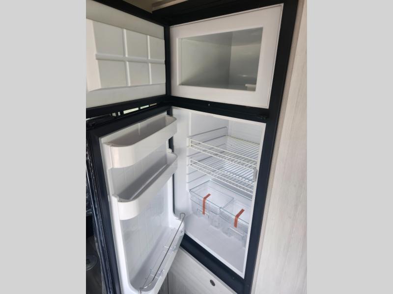 Chase your outdoor excursions in this comfortable motorhome for two! You will find side-facing rear power sofas that can convert to twin beds or a king-size bed for your comfort. If you're needing more sleeping space, just add the optional folding mattress for the front captain's seats! You can prepare at-home meals in the galley that features a two-burner propane stove, a 5.3-cu. ft. refrigerator, plus a counter extension with a charging station for your tablet or phone. After you've freshened up in the convenient wet bath, head outdoors for the day to enjoy the sunshine. When you return, you can make popcorn in the microwave oven and watch a movie on the 24" Smart TV!