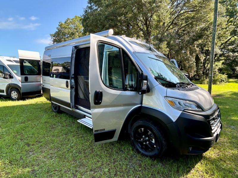 The Roadtrek Class B gas motorhomes are built upon the stylish Ram ProMaster 3500 chassis with a 3.6L V6 gas engine to power your trips near and far. The Uconnect 5 HD radio with Apple Car Play and Android Auto will make the drive just as sweet as the destination. Each model includes a 12V refrigerator, a two-burner recessed propane stove with a flush cover and built-in igniter, and ample storage space for all your belongings. There are even solar panels to go off the grid, an outdoor shower to rinse the dirt off your feet before entering inside, and a retractable awning to protect you rain or shine. Come find your favorite one today!