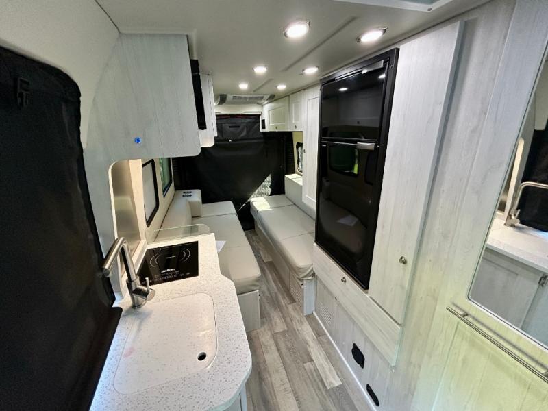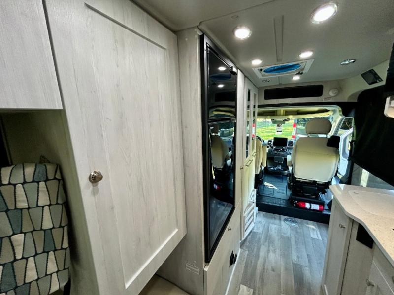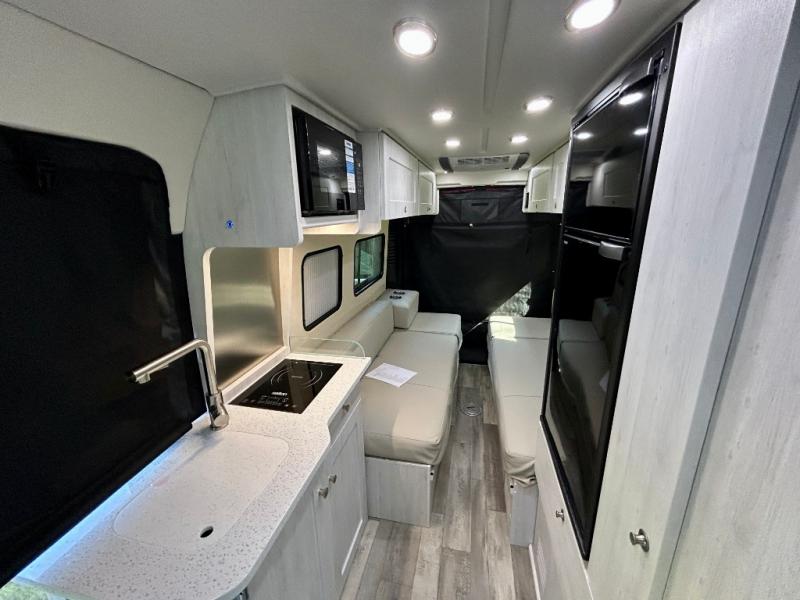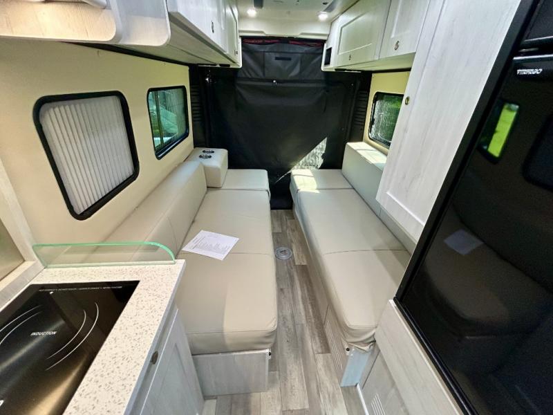 Chase your outdoor excursions in this comfortable motorhome for two! You will find side-facing rear power sofas that can convert to twin beds or a king-size bed for your comfort. If you're needing more sleeping space, just add the optional folding mattress for the front captain's seats! You can prepare at-home meals in the galley that features a two-burner propane stove, a 5.3-cu. ft. refrigerator, plus a counter extension with a charging station for your tablet or phone. After you've freshened up in the convenient wet bath, head outdoors for the day to enjoy the sunshine. When you return, you can make popcorn in the microwave oven and watch a movie on the 24" Smart TV!