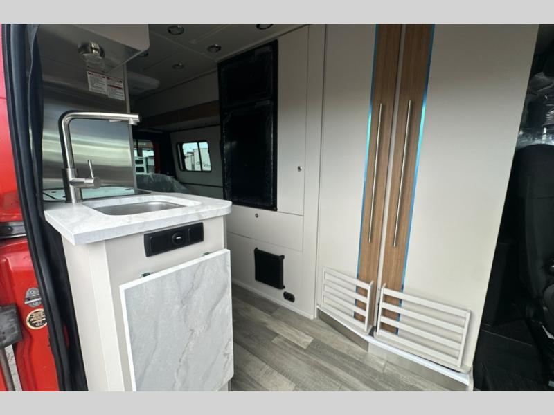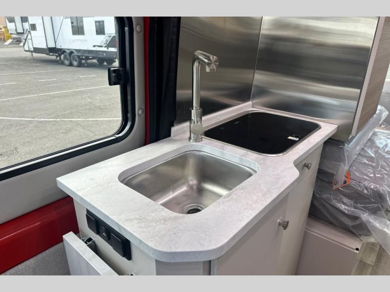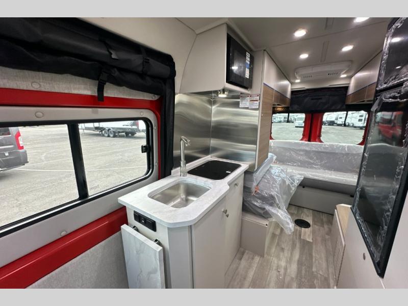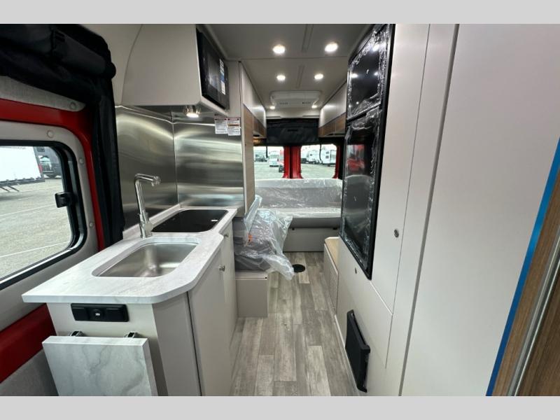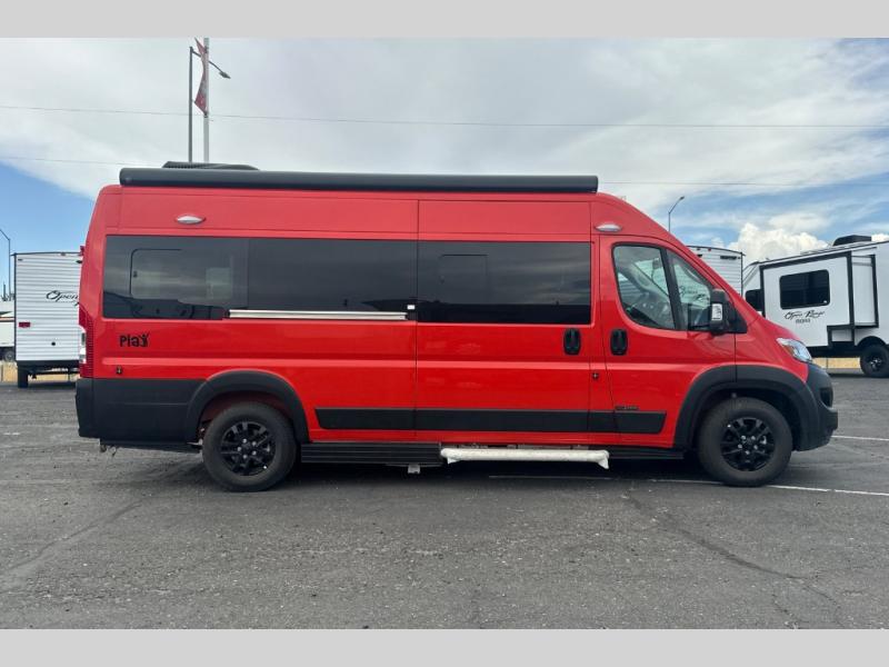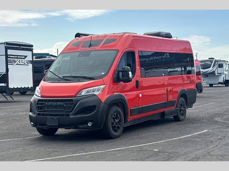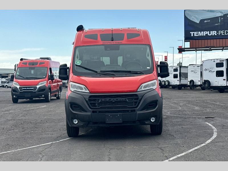 The Roadtrek Class B gas motorhomes are built upon the stylish Ram ProMaster 3500 chassis with a 3.6L V6 gas engine to power your trips near and far. The Uconnect 5 HD radio with Apple Car Play and Android Auto will make the drive just as sweet as the destination. Each model includes a 12V refrigerator, a two-burner recessed propane stove with a flush cover and built-in igniter, and ample storage space for all your belongings. There is even an outdoor shower to rinse the dirt off your feet before entering inside, and a retractable awning to protect you rain or shine. Come find your favorite one today!