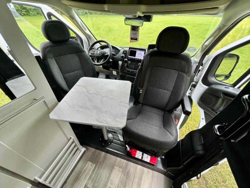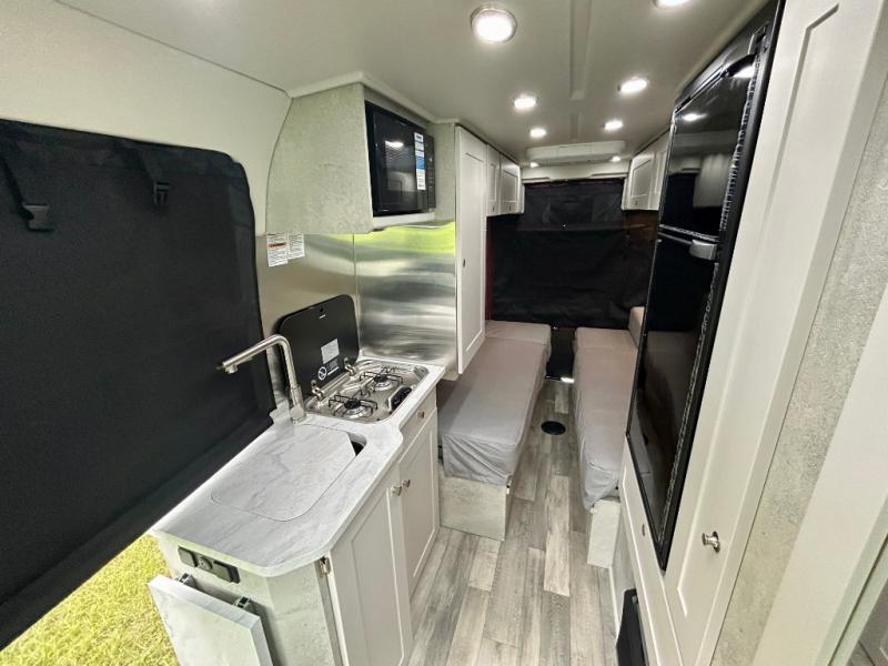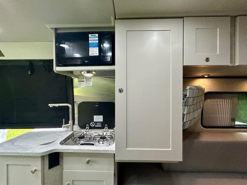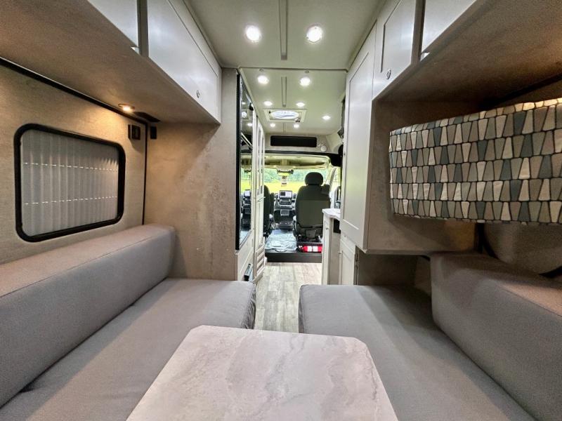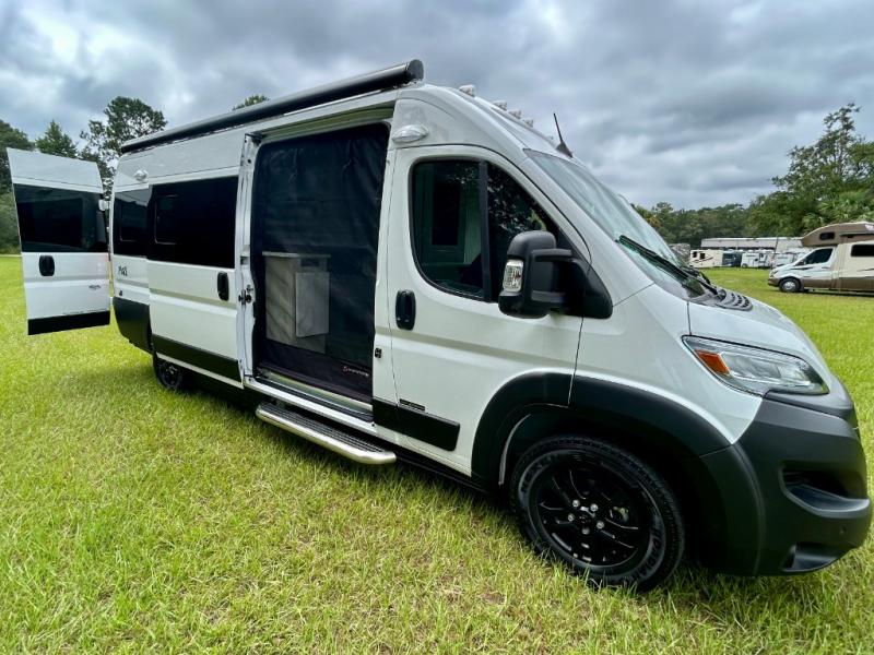The Roadtrek Class B gas motorhomes are built upon the stylish Ram ProMaster 3500 chassis with a 3.6L V6 gas engine to power your trips near and far. The Uconnect 5 HD radio with Apple Car Play and Android Auto will make the drive just as sweet as the destination. Each model includes a 12V refrigerator, a two-burner recessed propane stove with a flush cover and built-in igniter, and ample storage space for all your belongings. There is even an outdoor shower to rinse the dirt off your feet before entering inside, and a retractable awning to protect you rain or shine. Come find your favorite one today!