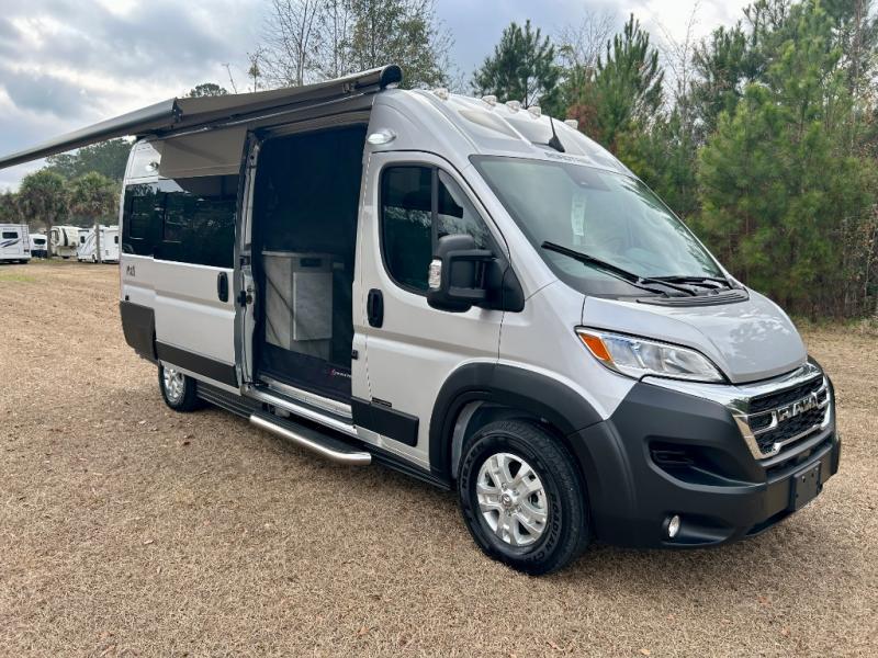 The Roadtrek Class B gas motorhomes are built upon the stylish Ram ProMaster 3500 chassis with a 3.6L V6 gas engine to power your trips near and far. The Uconnect 5 HD radio with Apple Car Play and Android Auto will make the drive just as sweet as the destination. Each model includes a 12V refrigerator, a two-burner recessed propane stove with a flush cover and built-in igniter, and ample storage space for all your belongings. There is even an outdoor shower to rinse the dirt off your feet before entering inside, and a retractable awning to protect you rain or shine. Come find your favorite one today!