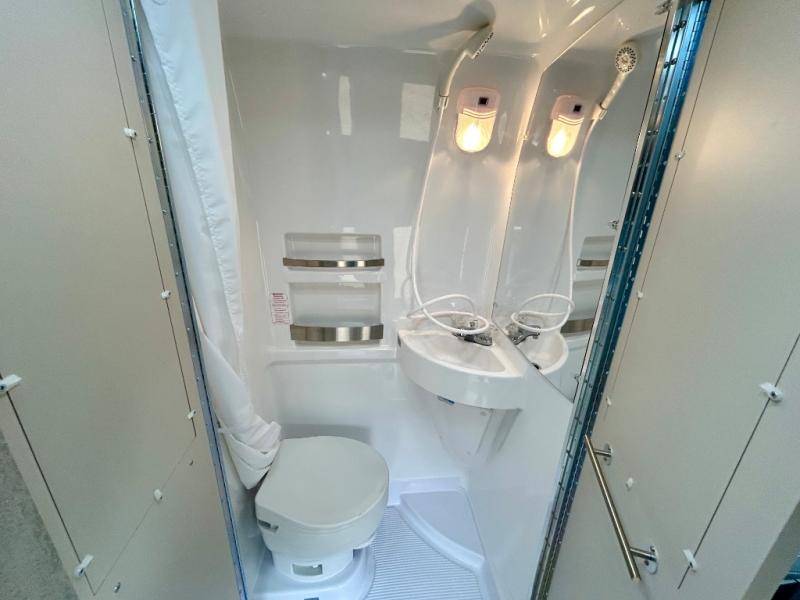 This is the perfect motorhome to take out when you're ready to play! You'll find plenty of storage space for items small and large, including a large pot drawer in the kitchen! The side-facing rear power sofas can convert to twin beds or a king-size bed, plus you can add the optional folding mattress to go over the front captain's seats if a grandkid tags along. Prepare breakfast on the two-burner propane stove or use the microwave oven if you're on-the-go. The wet bath with a sink, shower and toilet will allow you to freshen up after a day of hiking, and the 13' power awning outdoors will provide shade if you choose to dine outdoors for dinner.