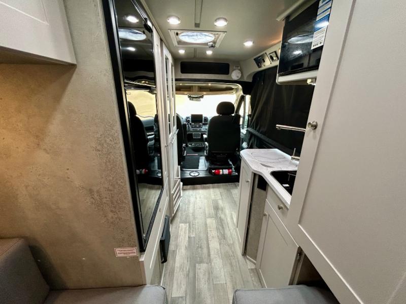 The Roadtrek Class B gas motorhomes are built upon the stylish Ram ProMaster 3500 chassis with a 3.6L V6 gas engine to power your trips near and far. The Uconnect 5 HD radio with Apple Car Play and Android Auto will make the drive just as sweet as the destination. Each model includes a 12V refrigerator, a two-burner recessed propane stove with a flush cover and built-in igniter, and ample storage space for all your belongings. There is even an outdoor shower to rinse the dirt off your feet before entering inside, and a retractable awning to protect you rain or shine. Come find your favorite one today!