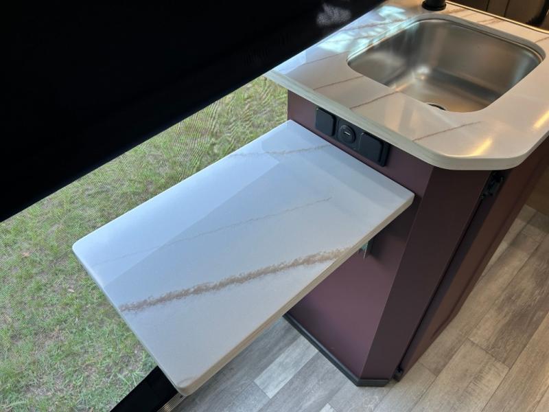 Take your play to the next level in this Play Plus model! You'll find plenty of storage space for items small and large, including a large pot drawer and a slide out pantry in the kitchen! The side-facing rear power sofas can convert to twin beds or a king-size bed, plus you can add the optional folding mattress to go over the front captain's seats if a grandkid tags along. Prepare breakfast on the two-burner propane stove or use the microwave oven if you're on-the-go. The wet bath with a sink, shower and toilet will allow you to freshen up after a day of hiking, and the 13' power awning outdoors will provide shade if you choose to dine outdoors for dinner.