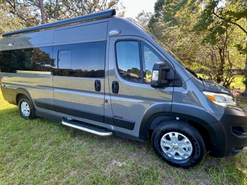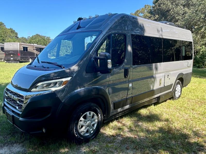 The Roadtrek Class B gas motorhomes are built upon the stylish Ram ProMaster 3500 chassis with a 3.6L V6 gas engine to power your trips near and far. The Uconnect 5 HD radio with Apple Car Play and Android Auto will make the drive just as sweet as the destination. Each model includes a 12V refrigerator, a two-burner recessed propane stove with a flush cover and built-in igniter, and ample storage space for all your belongings. There is even an outdoor shower to rinse the dirt off your feet before entering inside, and a retractable awning to protect you rain or shine. Come find your favorite one today!