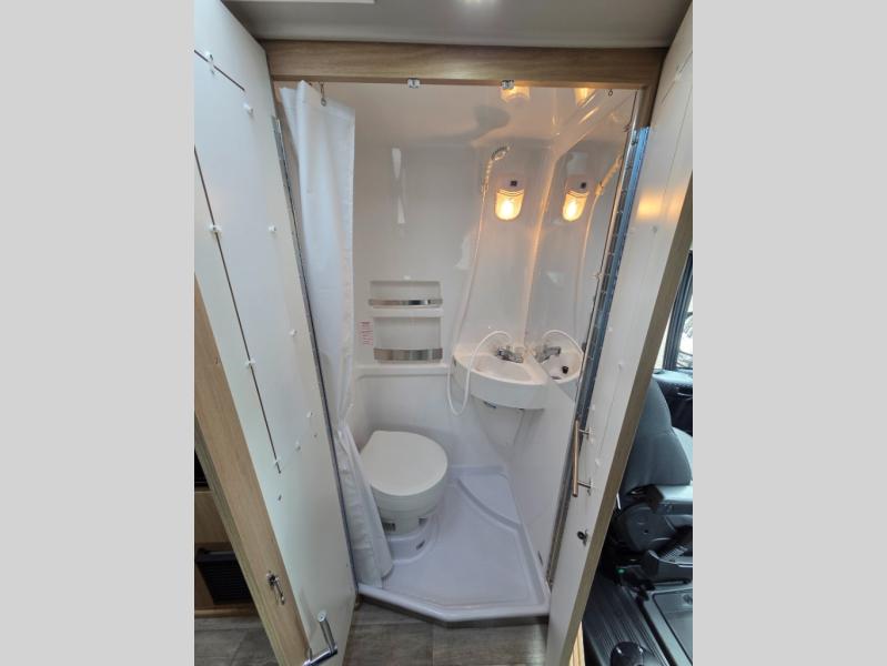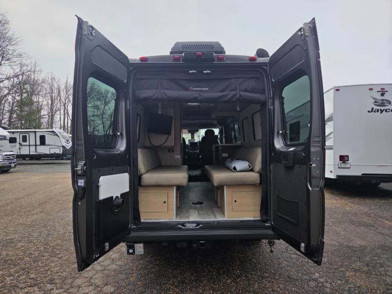 The Roadtrek Class B gas motorhomes are built upon the stylish Ram ProMaster 3500 chassis with a 3.6L V6 gas engine to power your trips near and far. The Uconnect 5 HD radio with Apple Car Play and Android Auto will make the drive just as sweet as the destination. Each model includes a 12V refrigerator, a two-burner recessed propane stove with a flush cover and built-in igniter, and ample storage space for all your belongings. There is even an outdoor shower to rinse the dirt off your feet before entering inside, and a retractable awning to protect you rain or shine. Come find your favorite one today!