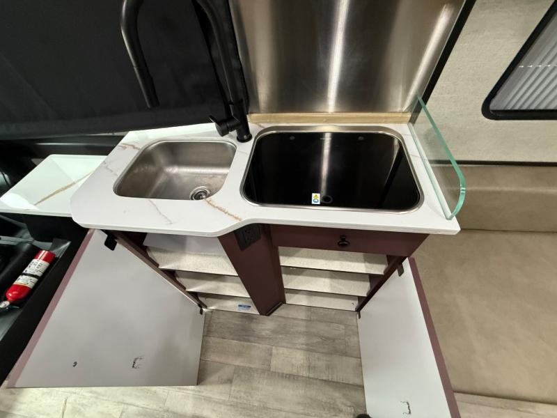 The Roadtrek Class B gas motorhomes are built upon the stylish Ram ProMaster 3500 chassis with a 3.6L V6 gas engine to power your trips near and far. The Uconnect 5 HD radio with Apple Car Play and Android Auto will make the drive just as sweet as the destination. Each model includes a 12V refrigerator, a two-burner recessed propane stove with a flush cover and built-in igniter, and ample storage space for all your belongings. There is even an outdoor shower to rinse the dirt off your feet before entering inside, and a retractable awning to protect you rain or shine. Come find your favorite one today!