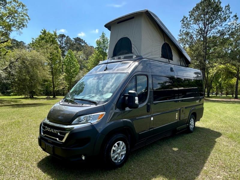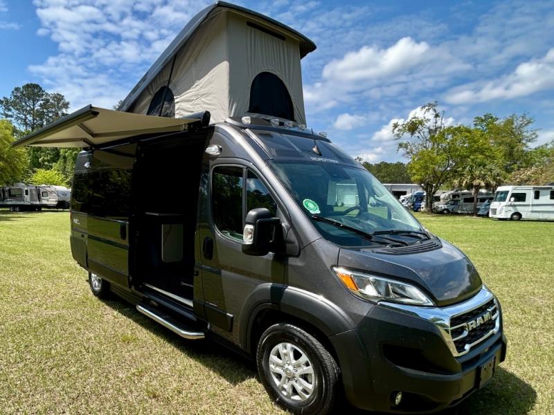 The Roadtrek Class B gas motorhomes are built upon the stylish Ram ProMaster 3500 chassis with a 3.6L V6 gas engine to power your trips near and far. The Uconnect 5 HD radio with Apple Car Play and Android Auto will make the drive just as sweet as the destination. Each model includes a 12V refrigerator, a two-burner recessed propane stove with a flush cover and built-in igniter, and ample storage space for all your belongings. There is even an outdoor shower to rinse the dirt off your feet before entering inside, and a retractable awning to protect you rain or shine. Come find your favorite one today!
