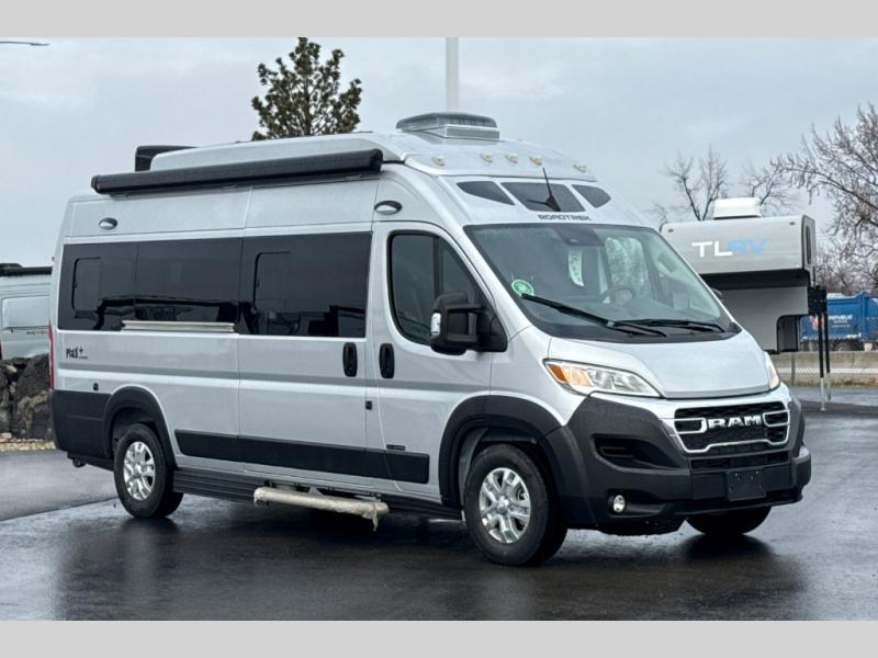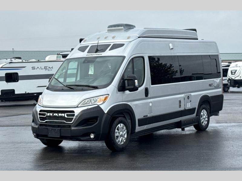 The Roadtrek Class B gas motorhomes are built upon the stylish Ram ProMaster 3500 chassis with a 3.6L V6 gas engine to power your trips near and far. The Uconnect 5 HD radio with Apple Car Play and Android Auto will make the drive just as sweet as the destination. Each model includes a 12V refrigerator, a two-burner recessed propane stove with a flush cover and built-in igniter, and ample storage space for all your belongings. There is even an outdoor shower to rinse the dirt off your feet before entering inside, and a retractable awning to protect you rain or shine. Come find your favorite one today!