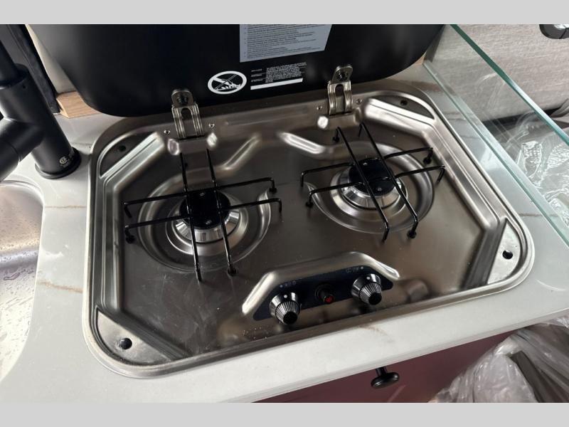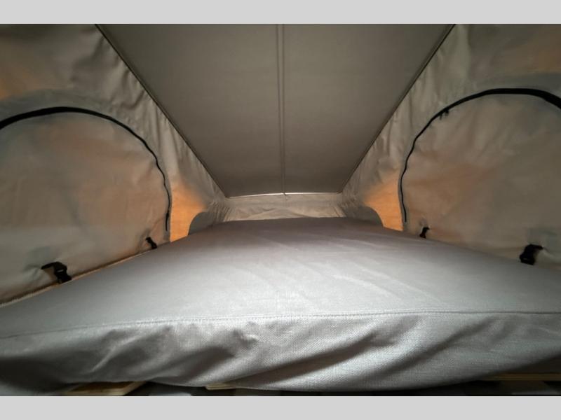 You can sleep four to five in this coach thanks to the pop-top sleeping area! You'll find plenty of storage space for items small and large, including a large pot drawer and a slide out pantry in the kitchen! The rear power sofa can easily convert to sleeping space at the push of a button, plus you can add the optional folding mattress to go over the front captain's seats if a grandkid tags along. Prepare breakfast on the two-burner propane stove or use the microwave oven if you're on-the-go. The wet bath with a sink, shower and toilet will allow you to freshen up after a day of hiking, and the 13' power awning outdoors will provide shade if you choose to dine outdoors for dinner.