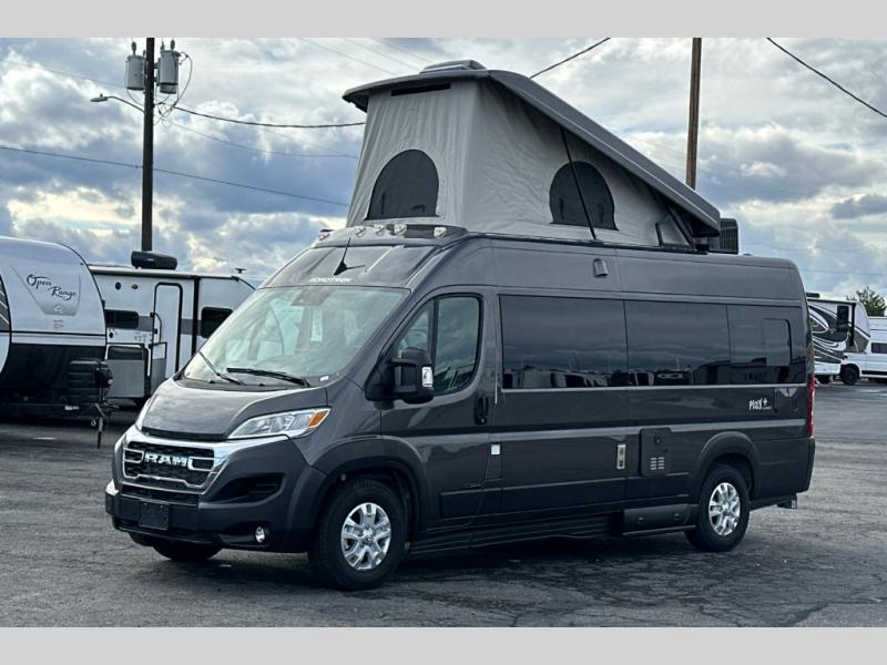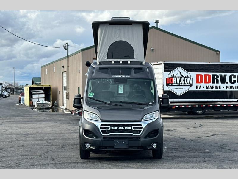 The Roadtrek Class B gas motorhomes are built upon the stylish Ram ProMaster 3500 chassis with a 3.6L V6 gas engine to power your trips near and far. The Uconnect 5 HD radio with Apple Car Play and Android Auto will make the drive just as sweet as the destination. Each model includes a 12V refrigerator, a two-burner recessed propane stove with a flush cover and built-in igniter, and ample storage space for all your belongings. There is even an outdoor shower to rinse the dirt off your feet before entering inside, and a retractable awning to protect you rain or shine. Come find your favorite one today!