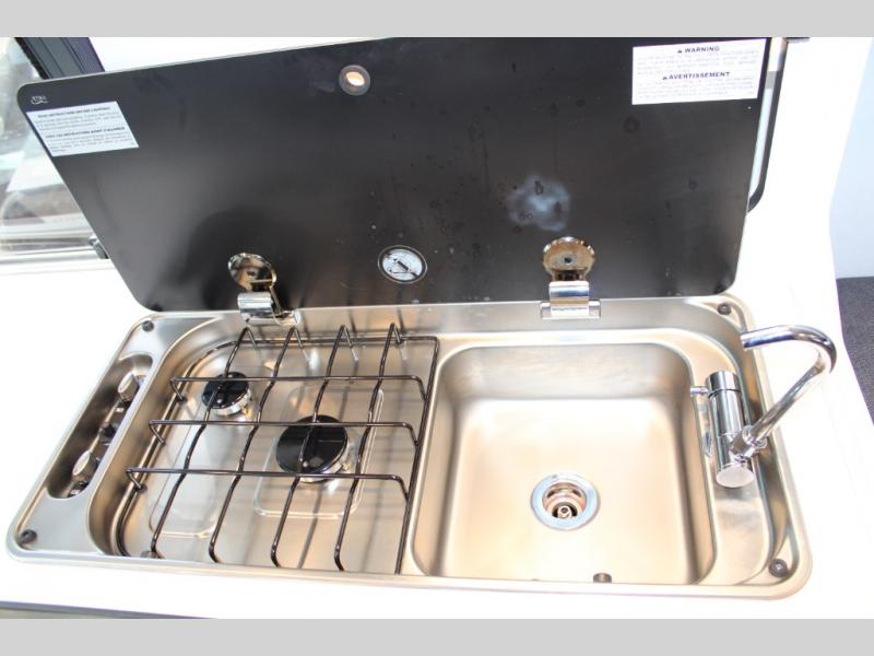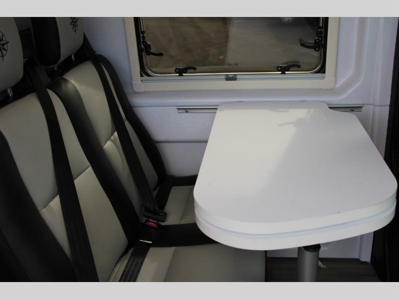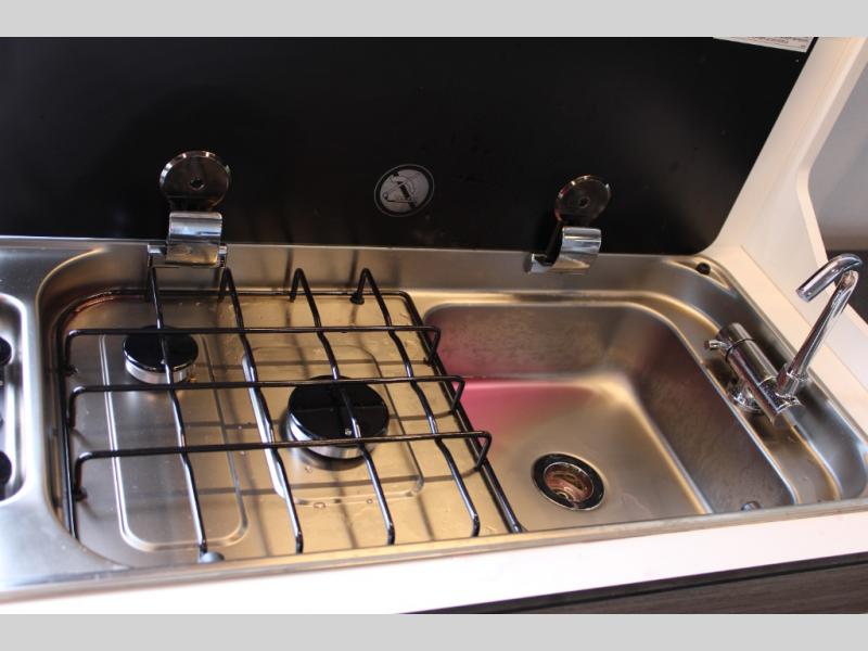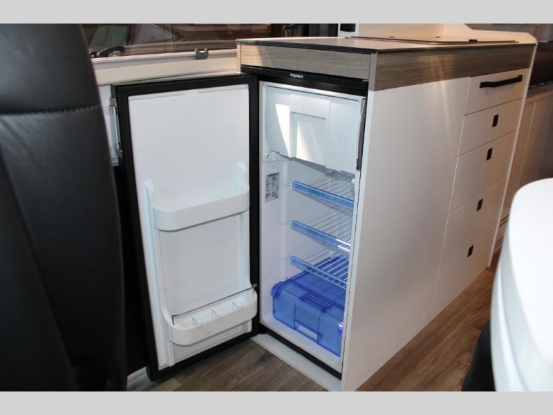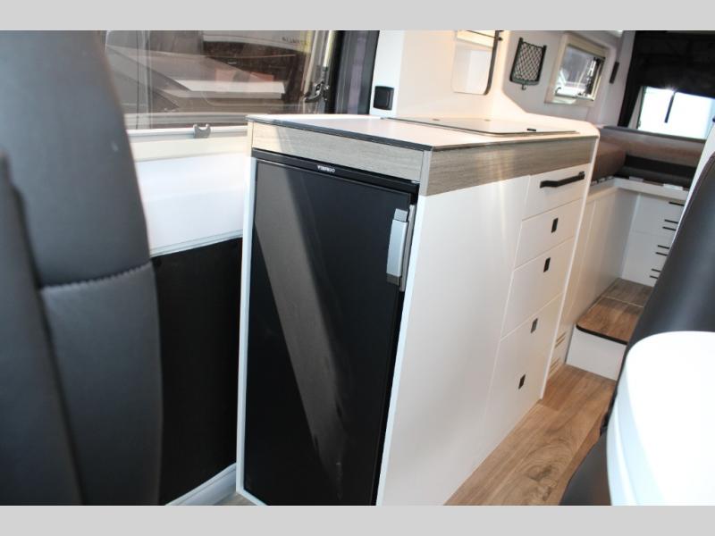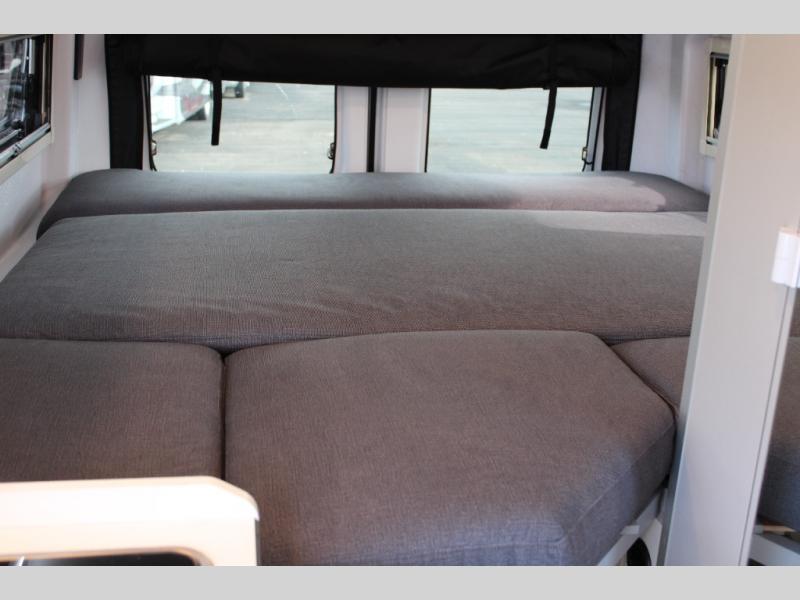 The Roadtrek Westfalia Wave Pop Top is a perfect choice - small size but packed wtih features and ready for fun! The interior features a well-equipped kitchen with microwave, 2-burner cooktop, and 3.2 cubic foot refrigerator. There's plenty of storage with 17 different cabinets and drawers, featuring clever solutions for all your belongings. At night there's the rear convertible bed, which can be equipped with a king or queen mattress, the bench/bed in the dining area, and the pop top roof with its own mattress. Screen window with roll shades mean you can enjoy the breeze without the bugs.