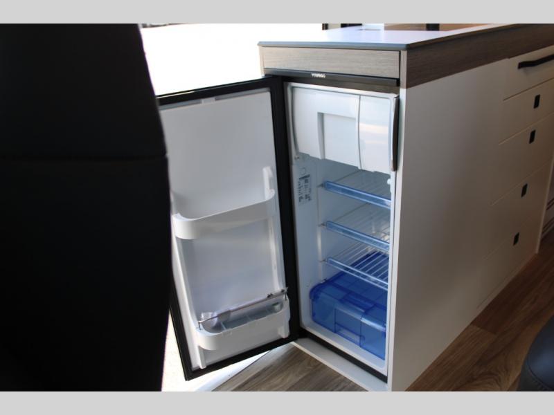 The Roadtrek Westfalia Wave Pop Top is a perfect choice - small size but packed wtih features and ready for fun! The interior features a well-equipped kitchen with microwave, 2-burner cooktop, and 3.2 cubic foot refrigerator. There's plenty of storage with 17 different cabinets and drawers, featuring clever solutions for all your belongings. At night there's the rear convertible bed, which can be equipped with a king or queen mattress, the bench/bed in the dining area, and the pop top roof with its own mattress. Screen window with roll shades mean you can enjoy the breeze without the bugs.