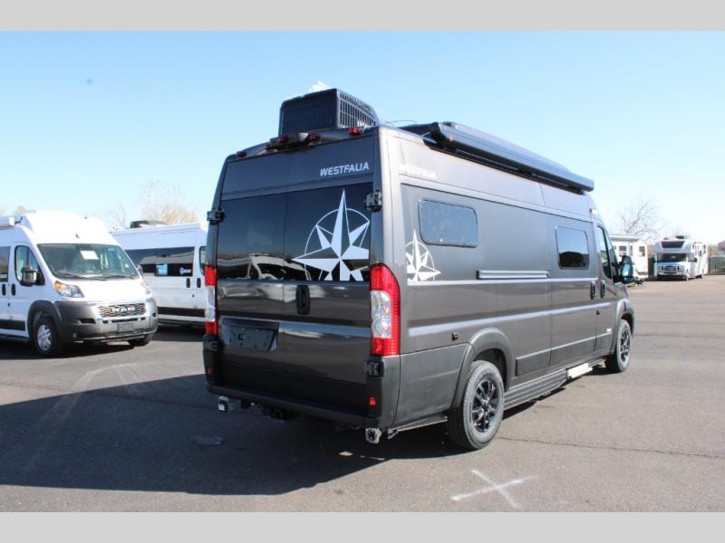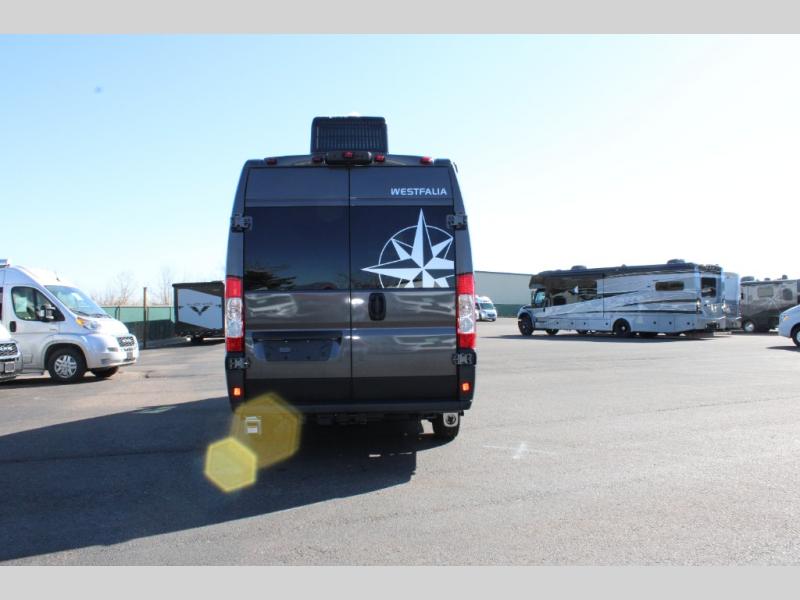 The Roadtrek Westfalia Class B gas motorhome is built on the Ram ProMaster 3500 chassis, offering reliability and safety. The stylish interior is Euro-inspired with black and white seats. The Uconnect HD radio with Apple Car Play and Android Auto includes a 10.1" display so you can easily see your route. Technology features like a wireless charging pad, 4G LTE Wi-Fi hotspot, and multiple integrated USB charging ports mean you can stay in touch, but you'll also love disconnecting as you gaze up at the stars. Outside you'll find a 13' power awning to protect you from the sun or rain, heavy-duty bug screens on all doors, and an outside shower for cleaning up after an outdoor adventure!