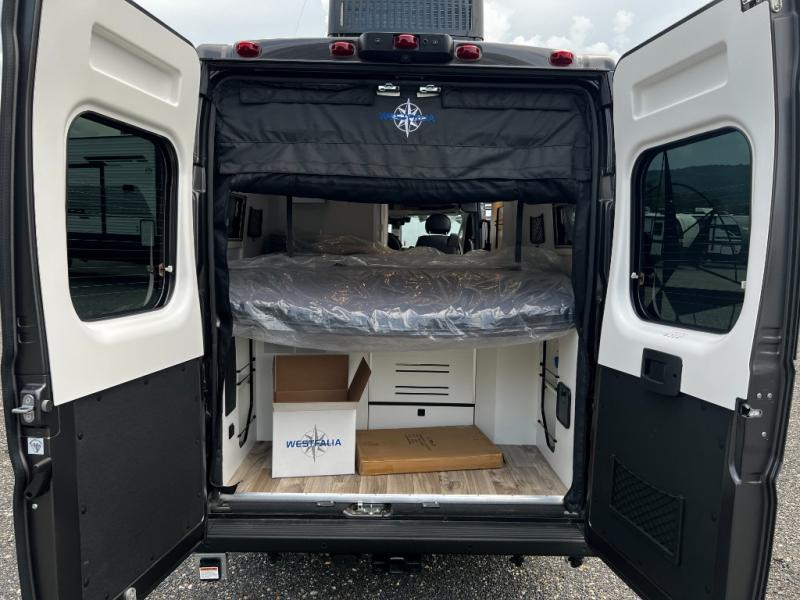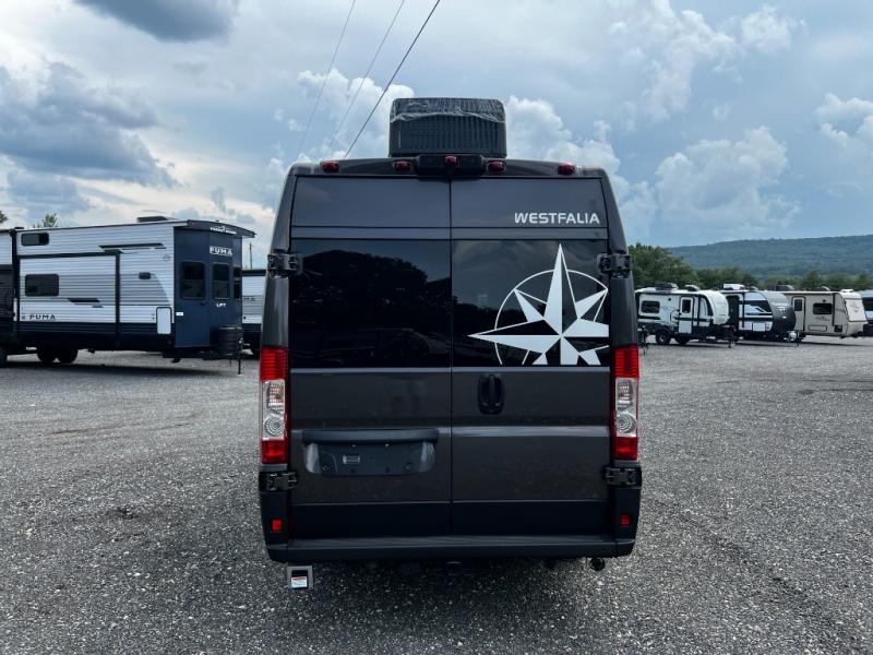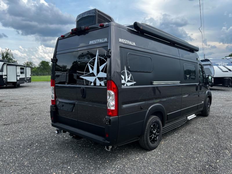The Roadtrek Westfalia Class B gas motorhome is built on the Ram ProMaster 3500 chassis, offering reliability and safety. The stylish interior is Euro-inspired with black and white seats. The Uconnect HD radio with Apple Car Play and Android Auto includes a 10.1" display so you can easily see your route. Technology features like a wireless charging pad, 4G LTE Wi-Fi hotspot, and multiple integrated USB charging ports mean you can stay in touch, but you'll also love disconnecting as you gaze up at the stars. Outside you'll find a 13' power awning to protect you from the sun or rain, heavy-duty bug screens on all doors, and an outside shower for cleaning up after an outdoor adventure!
