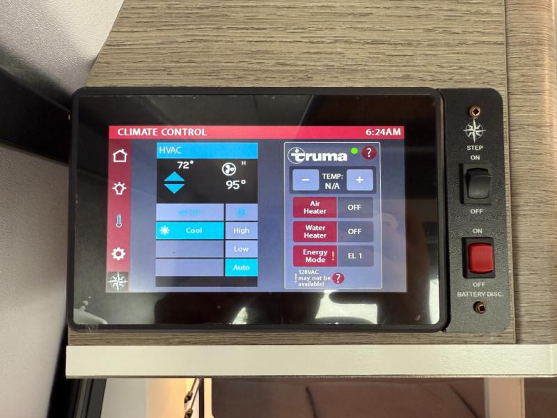 The Roadtrek Westfalia Class B gas motorhome is built on the Ram ProMaster 3500 chassis, offering reliability and safety. The stylish interior is Euro-inspired with black and white seats. The Uconnect HD radio with Apple Car Play and Android Auto includes a 10.1" display so you can easily see your route. Technology features like a wireless charging pad, 4G LTE Wi-Fi hotspot, and multiple integrated USB charging ports mean you can stay in touch, but you'll also love disconnecting as you gaze up at the stars. Outside you'll find a 13' power awning to protect you from the sun or rain, heavy-duty bug screens on all doors, and an outside shower for cleaning up after an outdoor adventure!