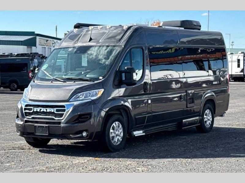 The Roadtrek Class B gas motorhomes are built upon the stylish Ram ProMaster 3500 chassis with a 3.6L V6 gas engine to power your trips near and far. The Uconnect 5 HD radio with Apple Car Play and Android Auto will make the drive just as sweet as the destination. Each model includes a 12V refrigerator, a two-burner recessed propane stove with a flush cover and built-in igniter, and ample storage space for all your belongings. There are even solar panels to go off the grid, an outdoor shower to rinse the dirt off your feet before entering inside, and a retractable awning to protect you rain or shine. Come find your favorite one today!