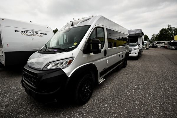 The Roadtrek Class B gas motorhomes are built upon the stylish Ram ProMaster 3500 chassis with a 3.6L V6 gas engine to power your trips near and far. The Uconnect 5 HD radio with Apple Car Play and Android Auto will make the drive just as sweet as the destination. Each model includes a 12V refrigerator, a two-burner recessed propane stove with a flush cover and built-in igniter, and ample storage space for all your belongings. The Firefly coach control system monitors the water, propane, battery charge levels, battery disconnect, and generator hour meter for your convenience. There are even solar panels to go off the grid, an outdoor shower to rinse the dirt off your feet before entering inside, and a retractable awning to protect you rain or shine. Come find your favorite one today!
