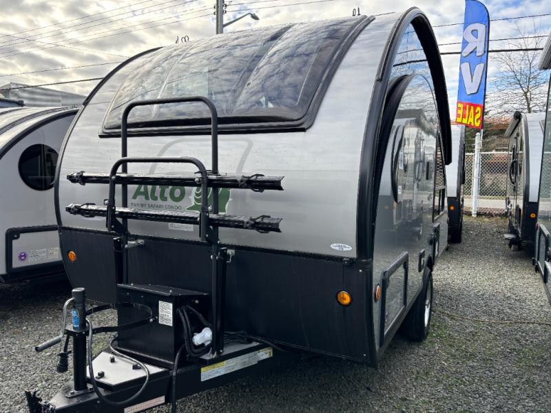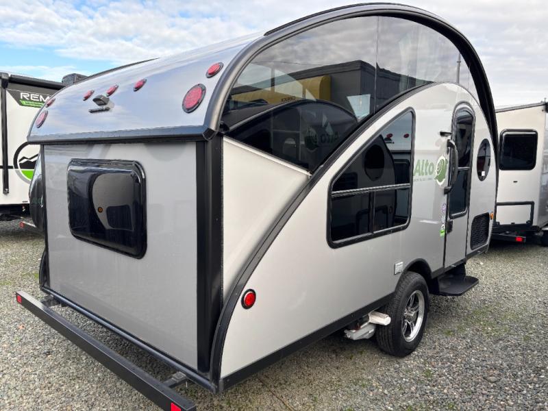 Each Alto travel trailer by Safari Condo is constructed with sustainable materials with a focus on lightweight towing. The aluminum floor and frame will add years of use to your RV, and the interior furnishings are made from composite materials. Each model includes electric brakes and a Flexiride suspension for smooth towing, a rear window screen and side door screen, plus a slick Silver Metallic exterior color or optional Azure Blue Metallic color. You will also appreciate the kitchen amenities inside to cook meals each day, the automatic 12V variable speed roof vent with a remote to keep you cool, plus available options to further customize your RV to fit your needs. Whether you choose a compact R-Series model, a spacious F-Series model, or the aerodynamic A-Series model, you'll be happy you went with an Alto travel trailer!