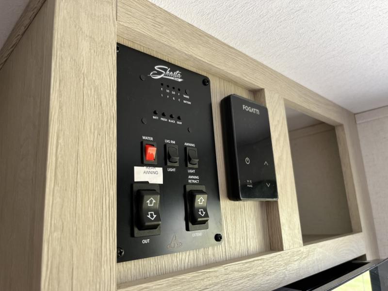 Shasta’s Compact series is known for being lightweight and tow-friendly. The 16RE includes four stabilizer jacks for a secure setup, along with solar and backup camera prep for off-grid capability and easier parking.