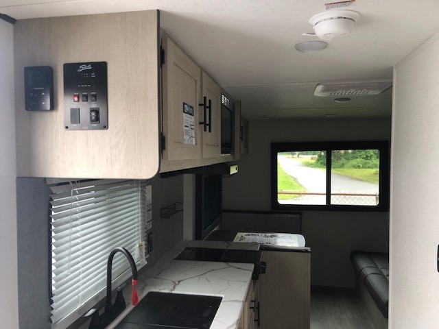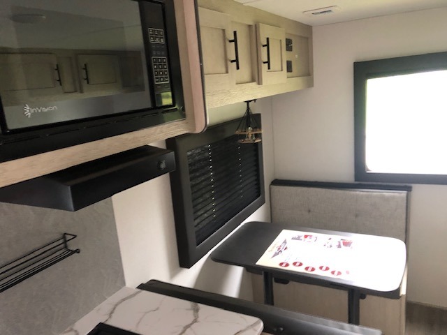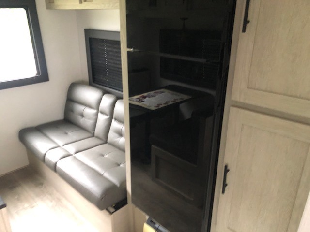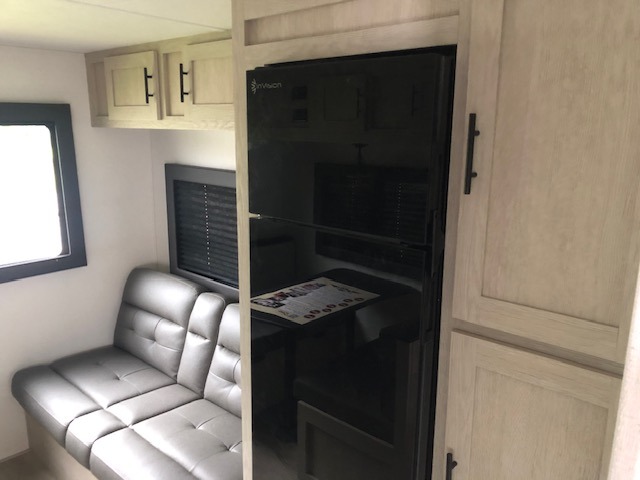 This non-slide i-5 Edition features everything you need for a cozy weekend away a a couples unit or small family of three or four. The rear of the unit features ample seating with opposing sofa and booth dinette. Each can accommodate a tired camper at night if needed. The kitchen is fully equipped for your camping trips featuring a three burner cooktop, a microwave cabinet, a large sink, plus a pantry and residential style refrigerator for food storage. In the front of this unit, a 60" x 74" RV queen bed provides a comfortable night's rest after a full day of fun. Outside, enjoy a nice pass-through storage compartment to easily access all of your outdoor camping gear plus more.