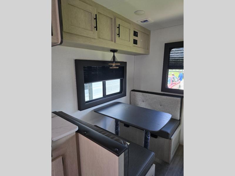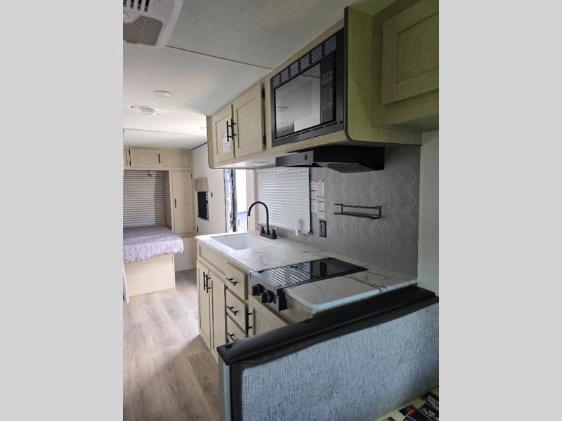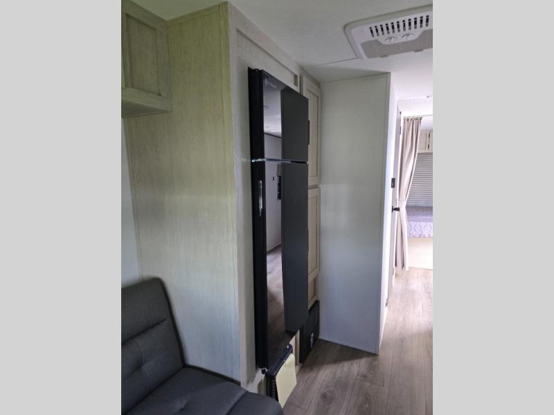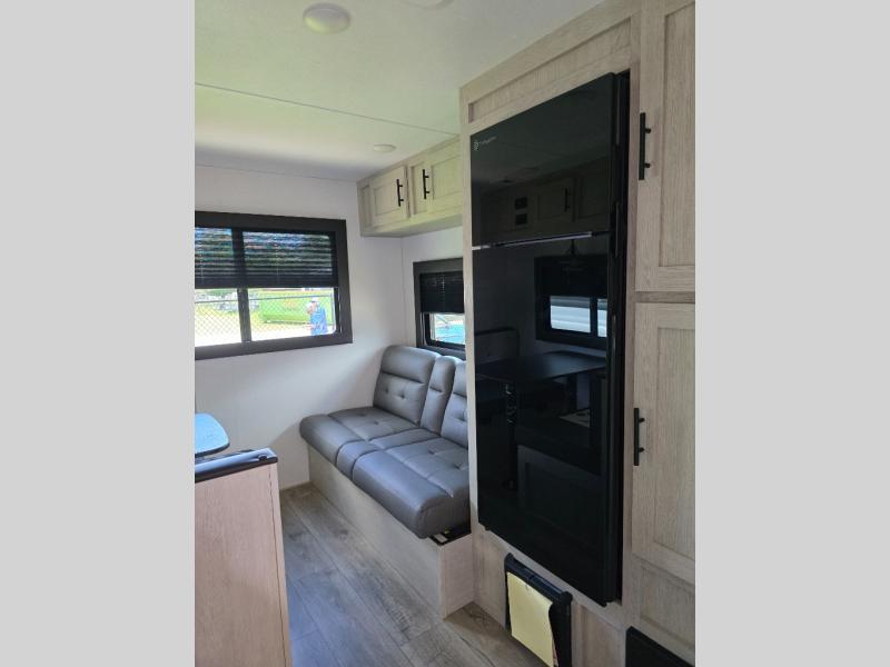This non-slide i-5 Edition features everything you need for a cozy weekend away a a couples unit or small family of three or four. The rear of the unit features ample seating with opposing sofa and booth dinette. Each can accommodate a tired camper at night if needed. The kitchen is fully equipped for your camping trips featuring a three burner cooktop, a microwave cabinet, a large sink, plus a pantry and residential style refrigerator for food storage. In the front of this unit, a 60" x 74" RV queen bed provides a comfortable night's rest after a full day of fun. Outside, enjoy a nice pass-through storage compartment to easily access all of your outdoor camping gear plus more.