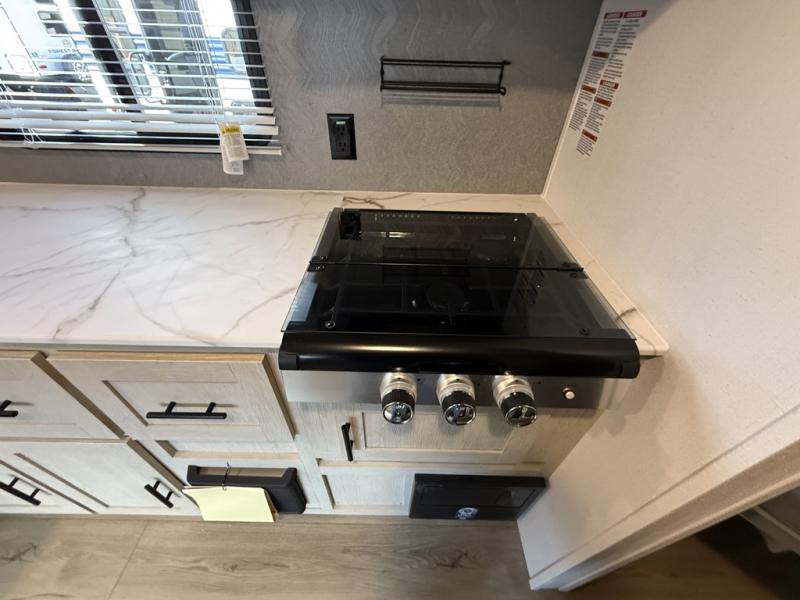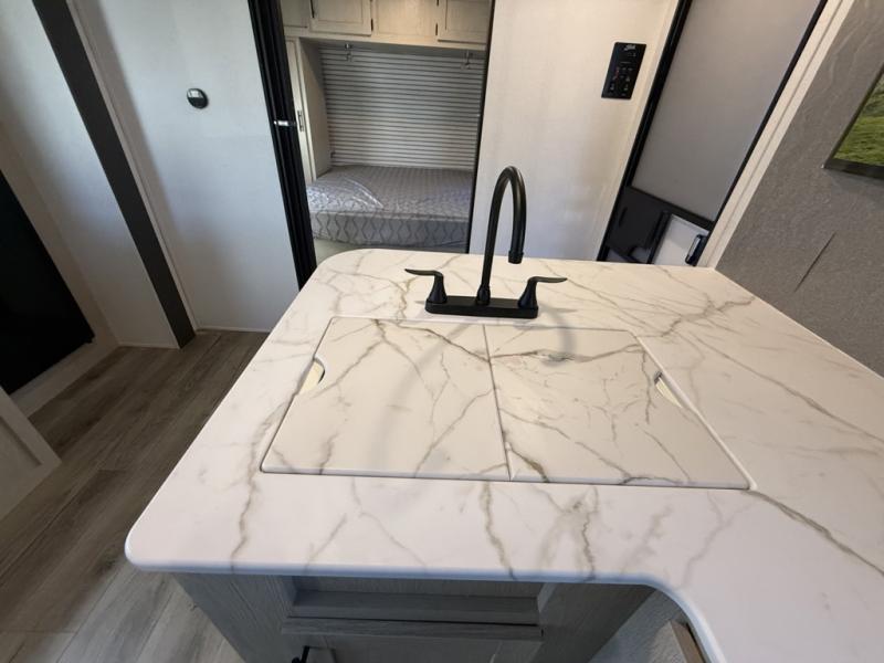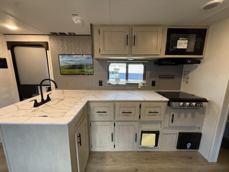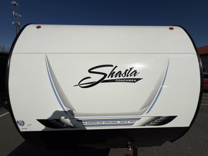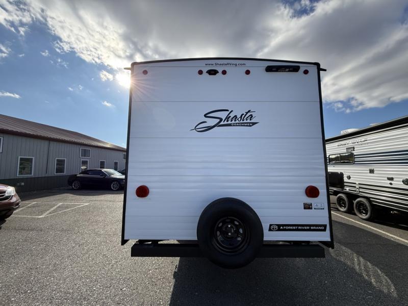 In any Shasta i-5 Edition travel trailer, you will find quality craftsmanship along with an affordable price tag. These units each feature four stabilizer jacks to make setting up easier and an enclosed underbelly for added protection as you travel. The Base Camp Package provides each unit with black tank flush, a monitor panel for quick access to the functions of your unit, a 13.5K A/C unit, and a tankless water heater for added convenience. Inside, you'll find seamless countertops, sink covers, a portable Bluetooth speaker, and more comforts!