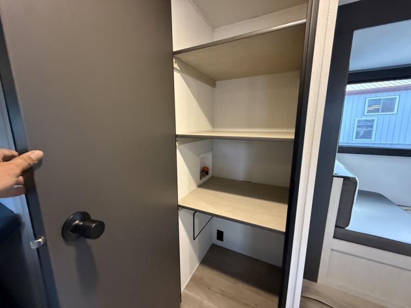 Enjoy camping with family and friends in this Shasta i-5 Edition bunk model! There are double-size bunks in the rear roadside corner and a full bath with a shower, vanity, and toilet in the opposite rear corner. There is ample counter space in the kitchen, plus there is an outside kitchen when you want to cook outdoors. You will also love the pantry in this unit that is washer/dryer ready if you want to add those appliances. A booth dinette within the large slide will provide a place to dine and play games together, and there is a TV mount across the room if you want to add entertainment. You'll love having a front bedroom with a 60" x 74" bed and dual wardrobes to keep your things picked up!