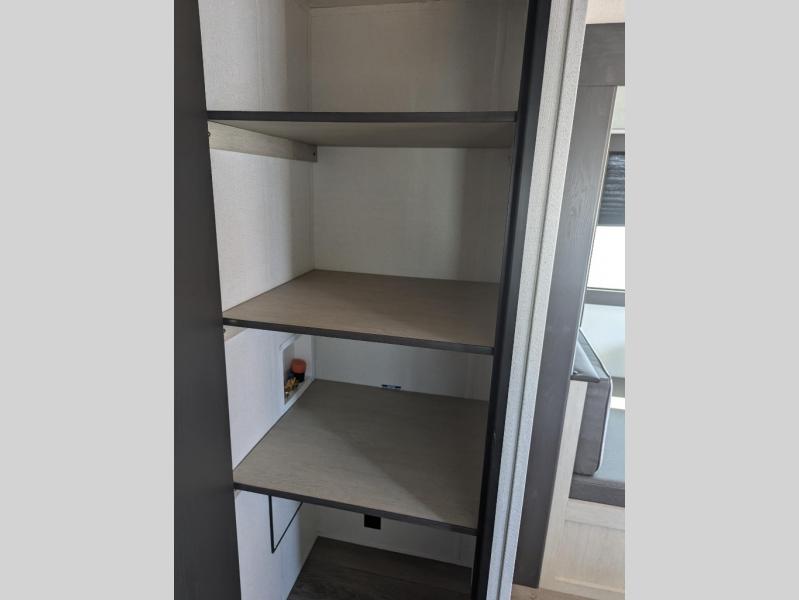 Enjoy camping with family and friends in this Shasta i-5 Edition bunk model! There are double-size bunks in the rear roadside corner and a full bath with a shower, vanity, and toilet in the opposite rear corner. There is ample counter space in the kitchen, plus there is an outside kitchen when you want to cook outdoors. You will also love the pantry in this unit that is washer/dryer ready if you want to add those appliances. A booth dinette within the large slide will provide a place to dine and play games together, and there is a TV mount across the room if you want to add entertainment. You'll love having a front bedroom with a 60" x 74" bed and dual wardrobes to keep your things picked up!