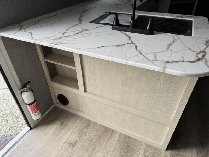 In any Shasta i-5 Edition travel trailer, you will find quality craftsmanship along with an affordable price tag. These units each feature four stabilizer jacks to make setting up easier and an enclosed underbelly for added protection as you travel. The Base Camp Package provides each unit with black tank flush, a monitor panel for quick access to the functions of your unit, a 13.5K A/C unit, and a tankless water heater for added convenience. Inside, you'll find seamless countertops, sink covers, a portable Bluetooth speaker, and more comforts!