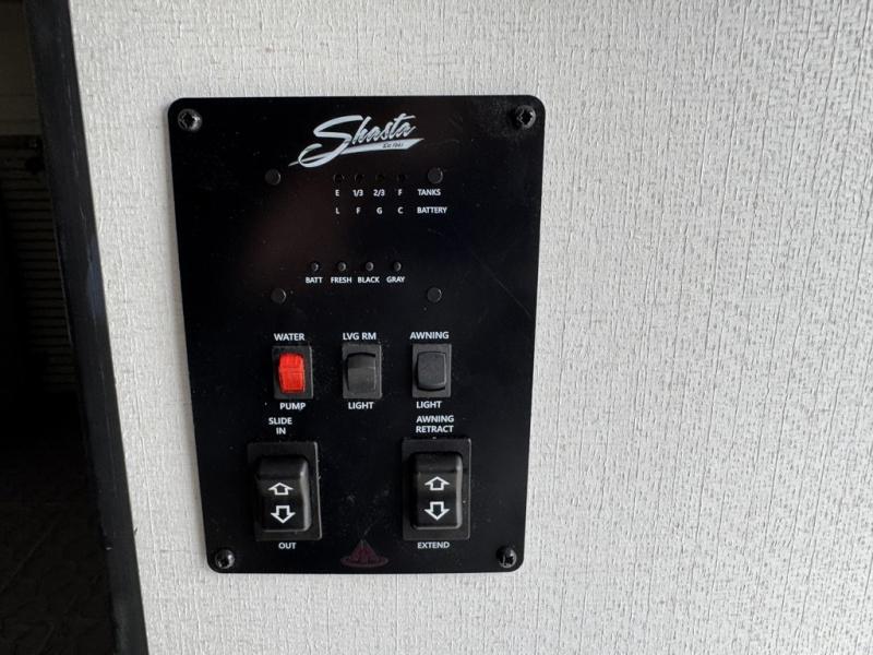 Enjoy camping with family and friends in this Shasta i-5 Edition bunk model! There are double-size bunks in the rear roadside corner and a full bath with a shower, vanity, and toilet in the opposite rear corner. There is ample counter space in the kitchen, plus there is an outside kitchen when you want to cook outdoors. You will also love the pantry in this unit that is washer/dryer ready if you want to add those appliances. A booth dinette within the large slide will provide a place to dine and play games together, and there is a TV mount across the room if you want to add entertainment. You'll love having a front bedroom with a 60" x 74" bed and dual wardrobes to keep your things picked up!