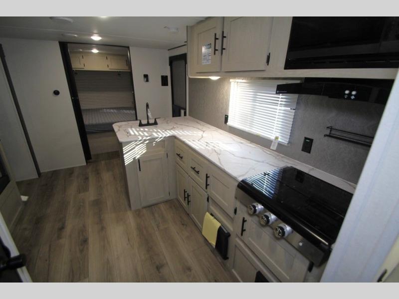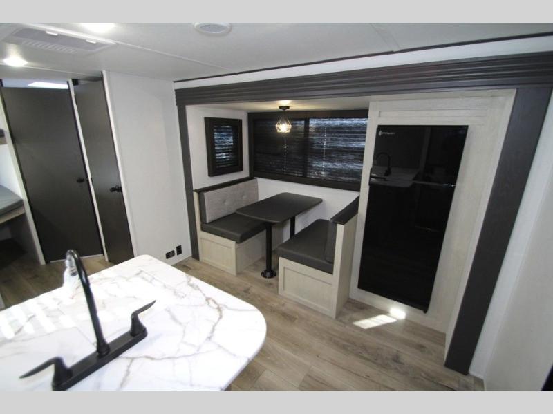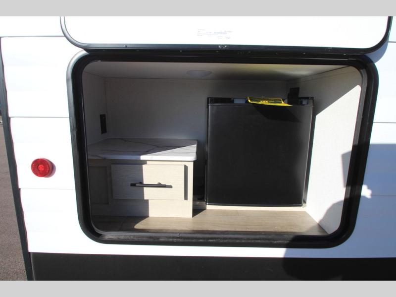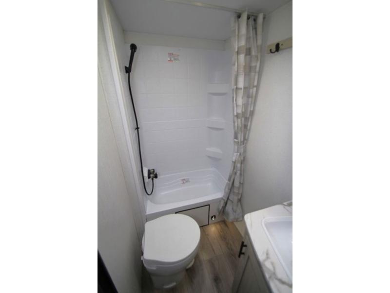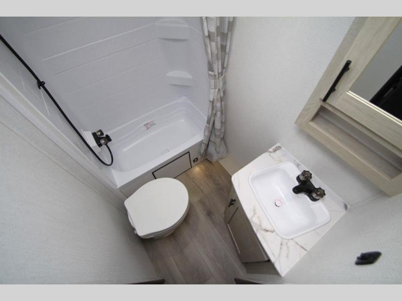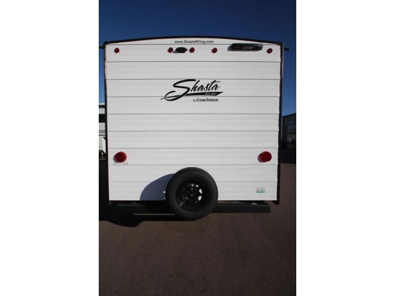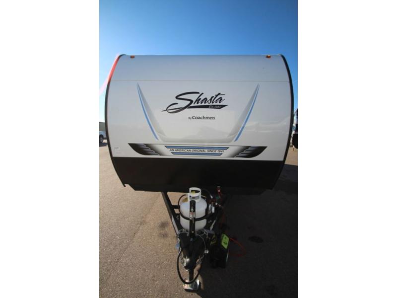 In any Shasta i-5 Edition travel trailer, you will find quality craftsmanship along with an affordable price tag. These units each feature four stabilizer jacks to make setting up easier and an enclosed underbelly for added protection as you travel. The Base Camp Package provides each unit with black tank flush, a monitor panel for quick access to the functions of your unit, a 13.5K A/C unit, and a tankless water heater for added convenience. Inside, you'll find seamless countertops, sink covers, a portable Bluetooth speaker, and more comforts!