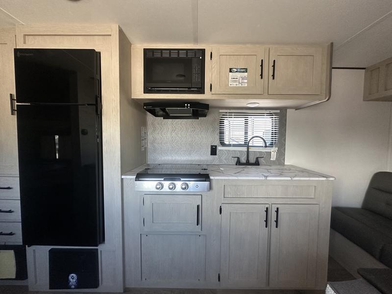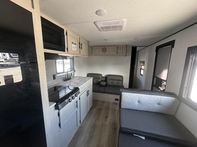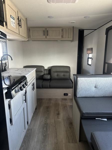 In any Shasta i-5 Edition travel trailer, you will find quality craftsmanship along with an affordable price tag. These units each feature four stabilizer jacks to make setting up easier and an enclosed underbelly for added protection as you travel. The Base Camp Package provides each unit with black tank flush, a monitor panel for quick access to the functions of your unit, a 13.5K A/C unit, and a tankless water heater for added convenience. Inside, you'll find seamless countertops, sink covers, a portable Bluetooth speaker, and more comforts!