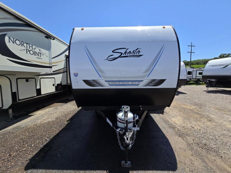 WASHER/DRYER PREP! This is a sweet half ton towable Coachmen Shasta bumper pull with washer/dryer prep and a bathroom that you wont believe! For a 29ft camper this thing is packed full of space and storage. Tons of counter space in the kitchen. Not to mention all the super wide and deep drawers and the ridiculously large pantry. The rear bathroom is really what sets this unit apart from the competition however. The huge counter top with his and hers sinks are obviously a huge plus. But the sheer amount of floor space is really what does it. Getting dressed after a nice long shower has never been made so easy. You really need to just see it for yourself. Come check it out at Dalton RV located at 307 West Parker Street in Plumerville.