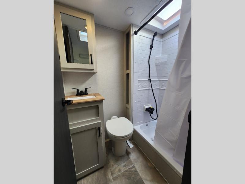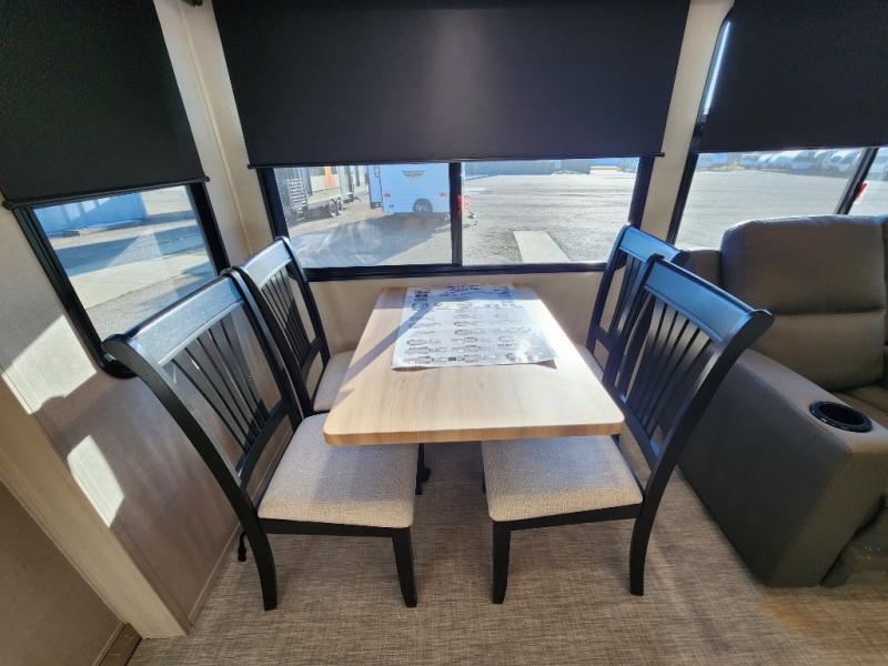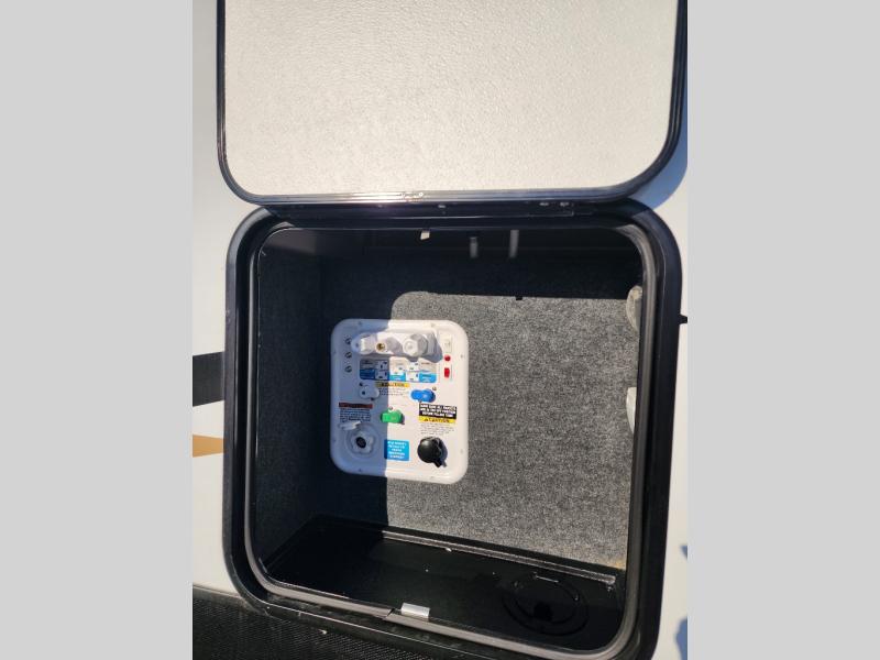 With any Phoenix mid-profile fifth wheel by Shasta RVs, the stand out construction features include residential 5" truss rafters, full walk-on roof decking, vacuum bonded and aluminum framed sidewalls with rot proof AZDEL composite sidewall panels. The Weather Shield+ offers cold and hot testing, 12V thermal tank heaters on all tanks, a sectionalized underbelly and heated gate valves and more so you can camp during any season you wish. The Road Armor Suspension by Trail Air will make towing easier than ever, and the upgraded marine-style convenience center includes a black tank flush plus a hot/cold shower to wash off hiking gear. Head inside to find solid surface countertops and sink covers, an upgraded 50" 4K Smart LED TV in the living room, USB/USB-C charging ports, and an upgraded 60K BTU on-demand water heater to name a few comforts!