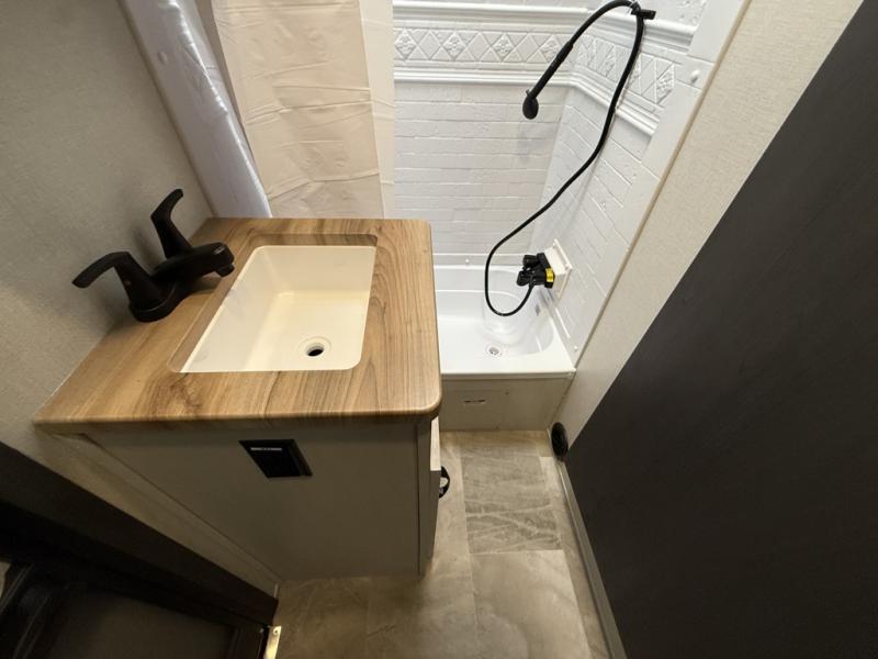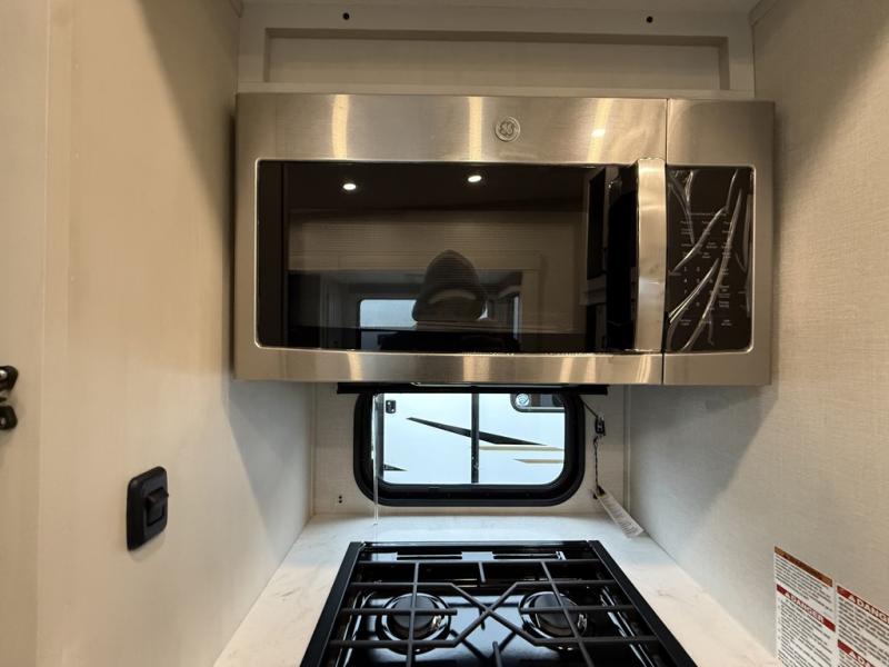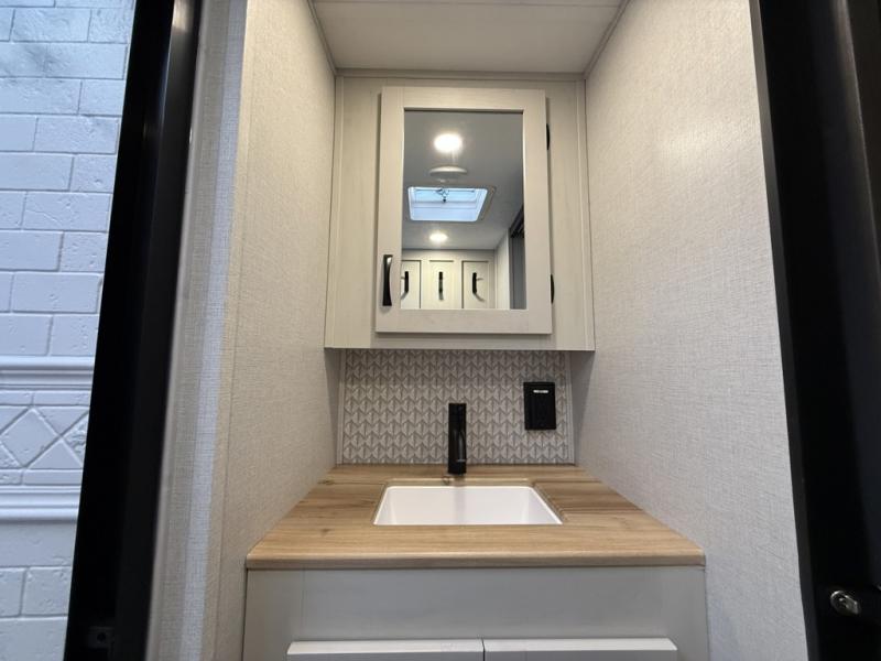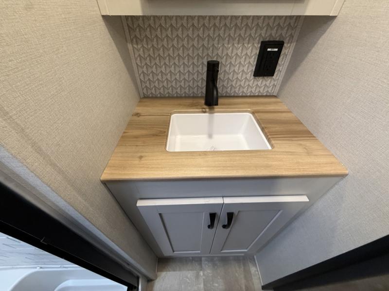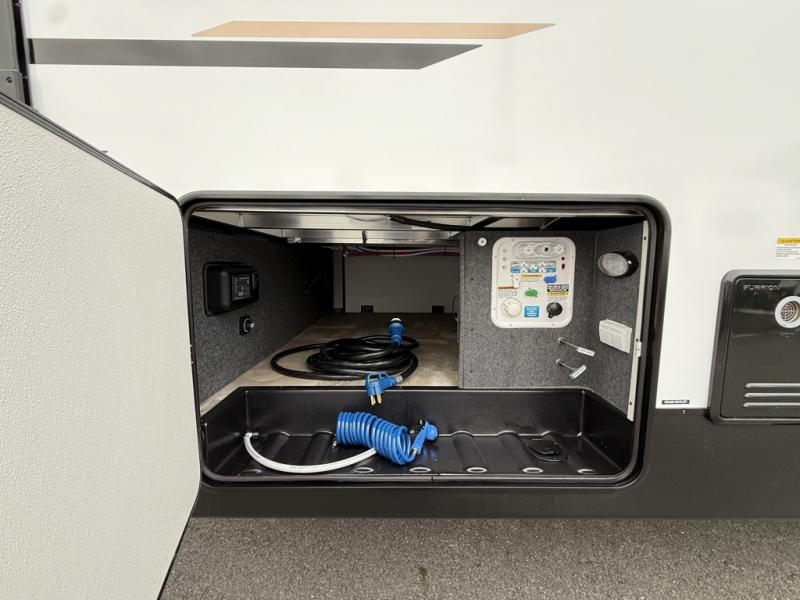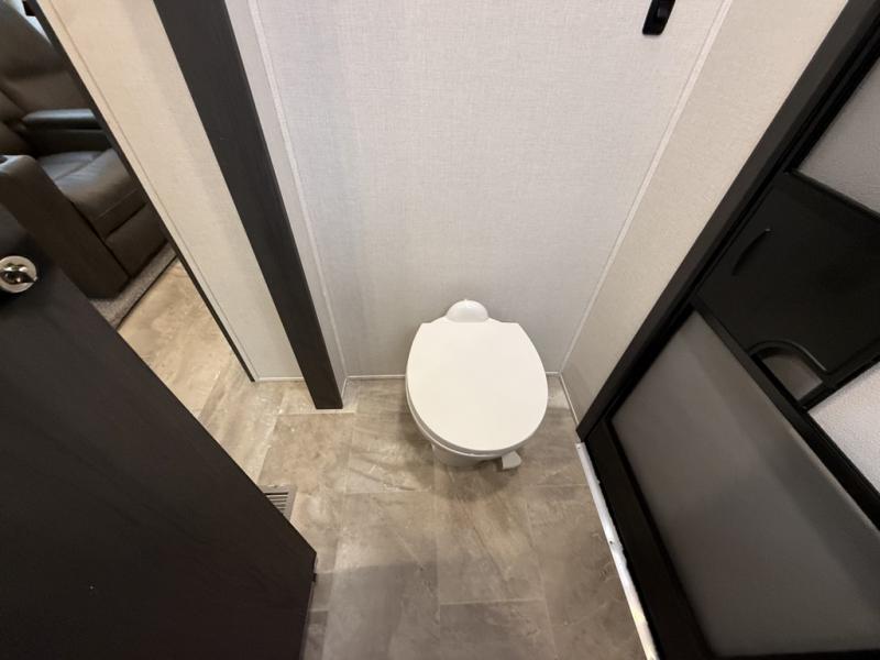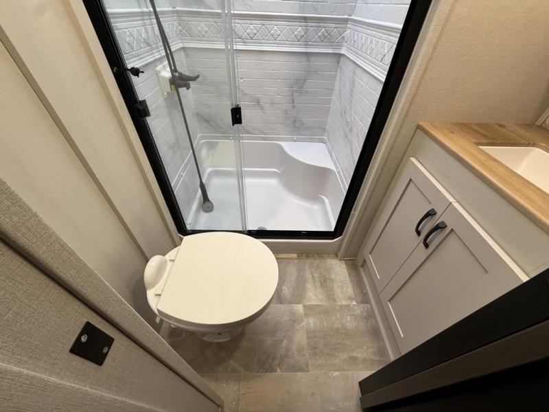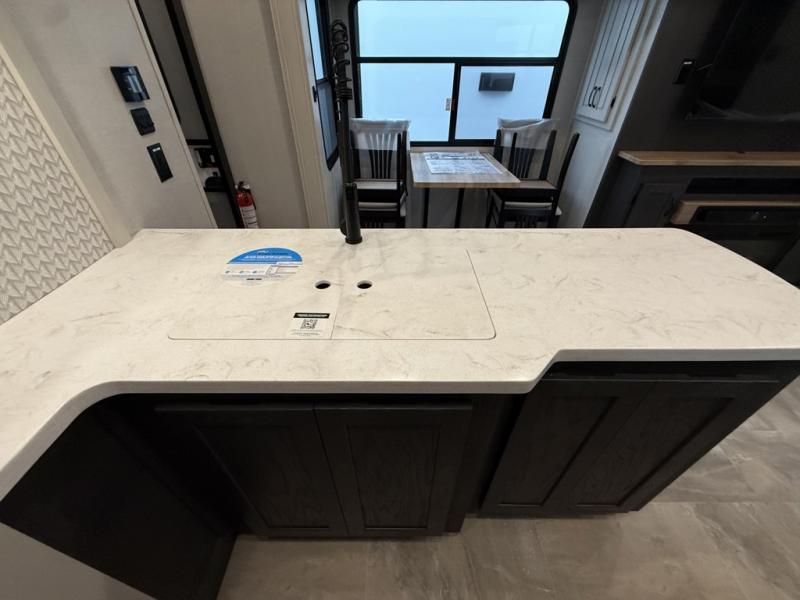 With any Phoenix mid-profile fifth wheel by Shasta RVs, the stand out construction features include residential 5" truss rafters, full walk-on roof decking, vacuum bonded and aluminum framed sidewalls with rot proof AZDEL composite sidewall panels. The Weather Shield+ offers cold and hot testing, 12V thermal tank heaters on all tanks, a sectionalized underbelly and heated gate valves and more so you can camp during any season you wish. The Road Armor Suspension by Trail Air will make towing easier than ever, and the upgraded marine-style convenience center includes a black tank flush plus a hot/cold shower to wash off hiking gear. Head inside to find solid surface countertops and sink covers, an upgraded 50" 4K Smart LED TV in the living room, USB/USB-C charging ports, and an upgraded 60K BTU on-demand water heater to name a few comforts!