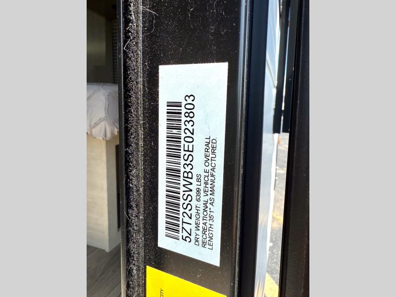 You and your guests will appreciate having privacy in this spacious travel trailer with a rear bunkhouse and a front bedroom! The bunkhouse includes four bunks, two storage cabinets, plus a hanging bar so clothes stay wrinkle-free. A queen bed comes standard in the front bedroom to ensure a great night's rest, plus there are dual bedroom wardrobes and two bed shelves to keep valuables close by. Everyone can meet in the combined kitchen and living area that includes a large slide out for more space. The sofa and U-shaped dinette here will provide a place to relax, play games, and even sleep more guests if needed. And of course, you can't overlook the full bath, complete with a large sink, shower skylight, and powered roof vent to keep everything fresh!