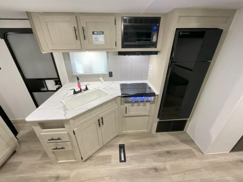 With each Shasta travel trailer by Shasta RVs, premium construction products are used such as radius wood rafters, wall studs on 16” centers, cambered steel I-beam frame, Congoleum flooring, and seamless countertops. Also included is an aerodynamic radius front profile, a front colored rock guard to protect against road debris, a straight axle with electric brakes, and a power tongue jack for easy setup. The interior offers decorative cabinet pulls, USB charging stations, an under-mount kitchen sink with a sink cover, and more providing value and convenience. Since there is King WiFi prep you have the option to work remotely, plus you can add electric stabilizer jacks, aluminum wheels, roof mounted 200 watt solar panel, and more available options!