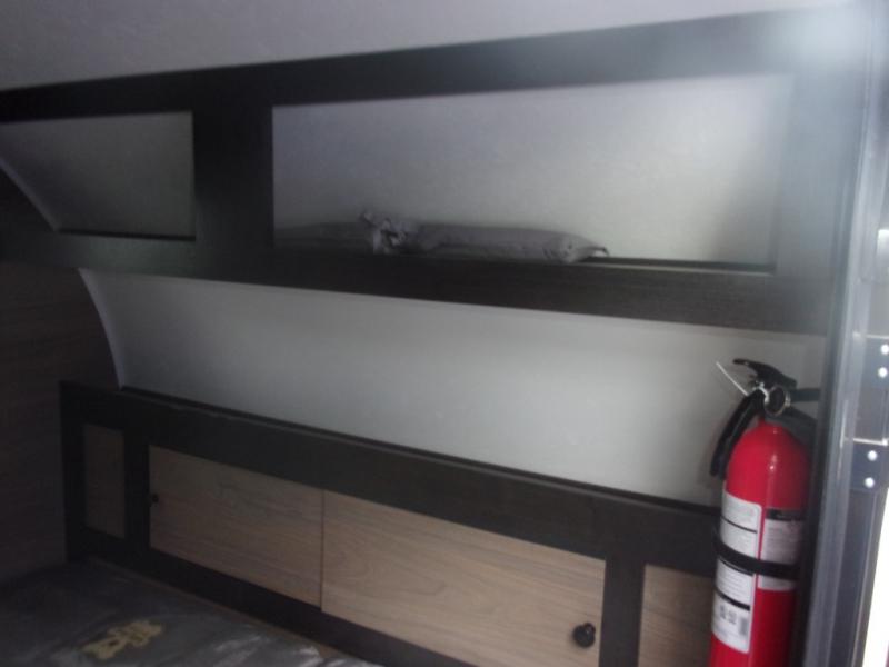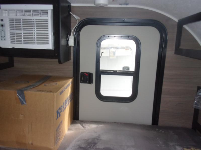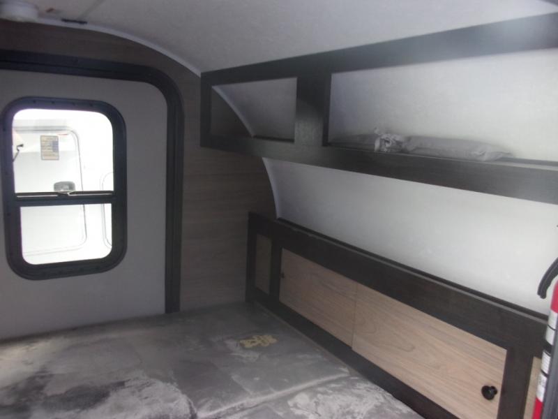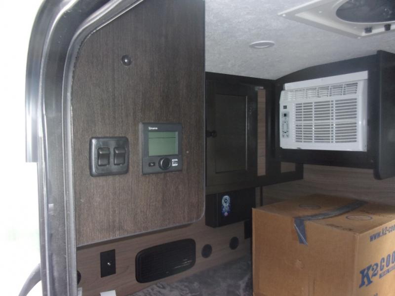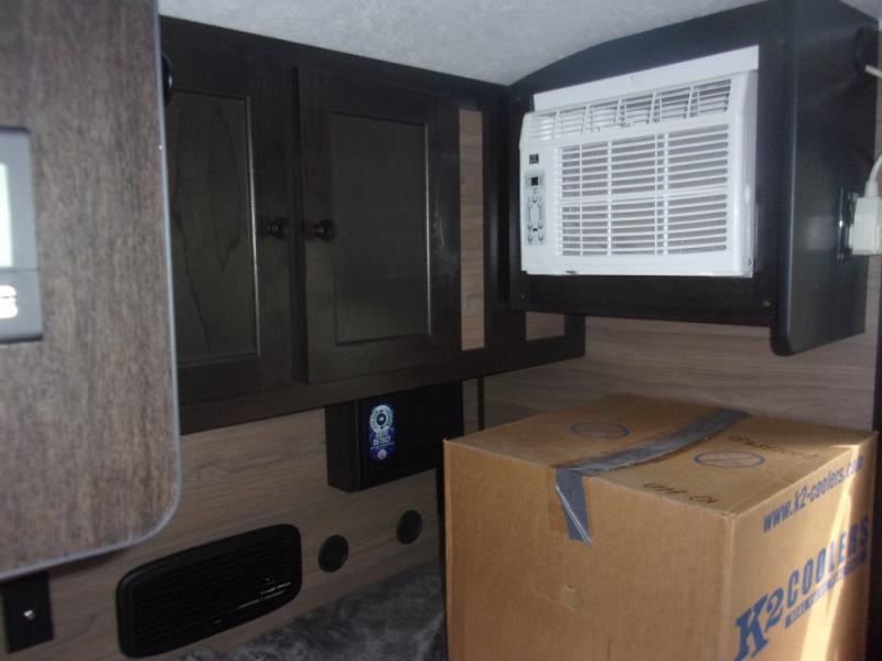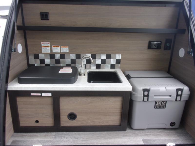 This is the perfect trailer for two campers looking for adventure. The dual entry doors will make it so easy for you both to climb into bed each night, and there is an overhead cabinet to keep your valuables out of the way. The A/C will keep you cool on those hot summer camping months, and there is also a 16,000 BTU furnace to keep you comfortable year around. An outside kitchen includes a two burner gas cooktop and a built-in sink and faucet, plus an outside-accessible 30-quart cooler to keep perishables fresh.