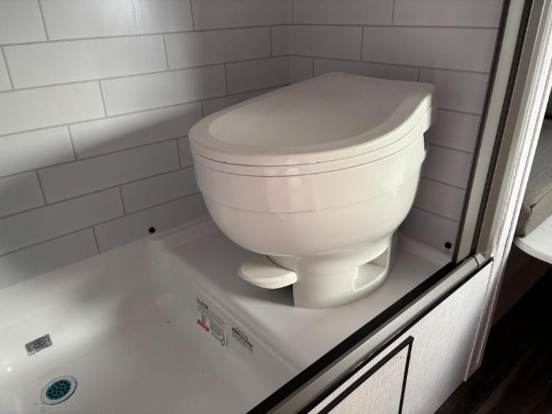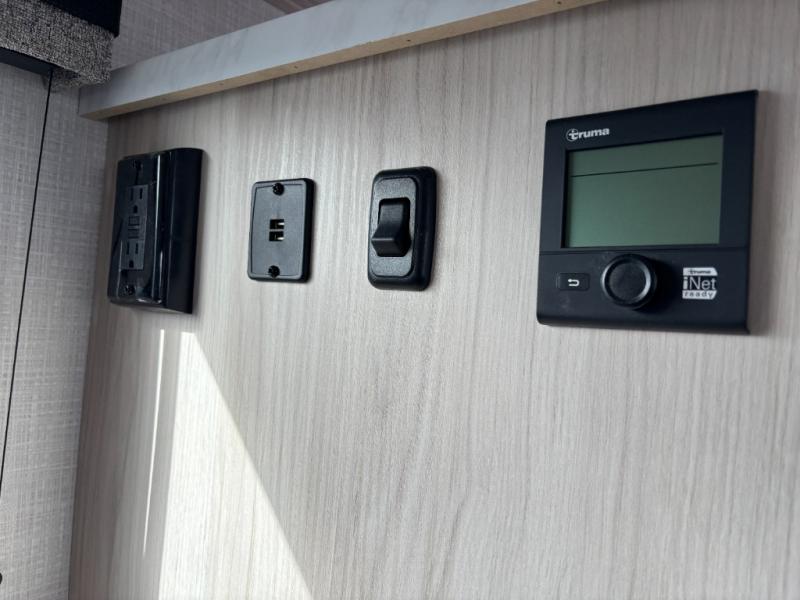 If you're looking for a little more space and comfort, this trailer may just be the one for you! There is a U-shaped dinette in the back that will double as dining and sleeping space for guests. You can freshen up in the wet bath, then start breakfast on the two burner cooktop. There is also a microwave oven for instant oatmeal and a 12V refrigerator where milk can be stored. This model also includes a front bed where you can rest up before a new day of exploring!