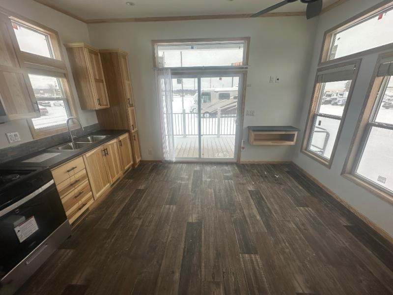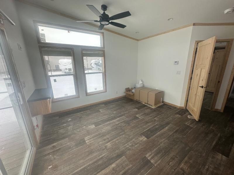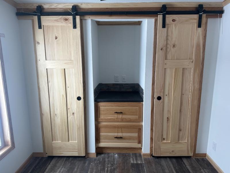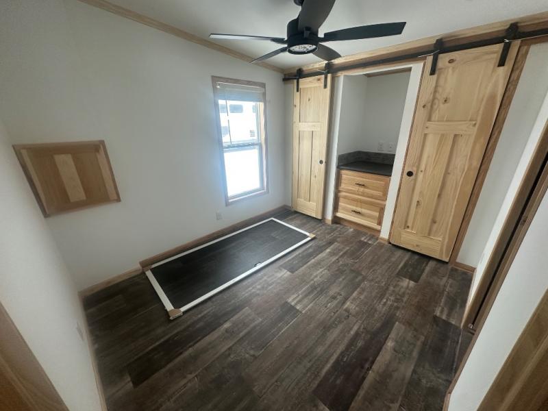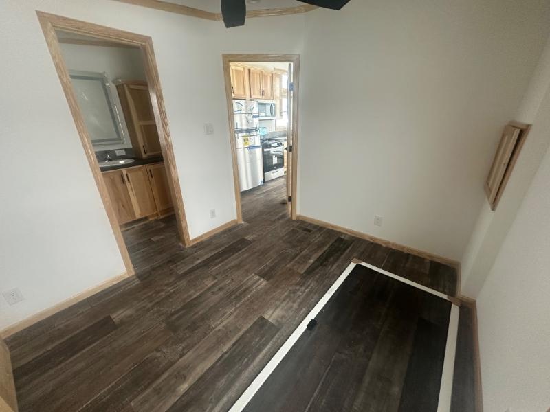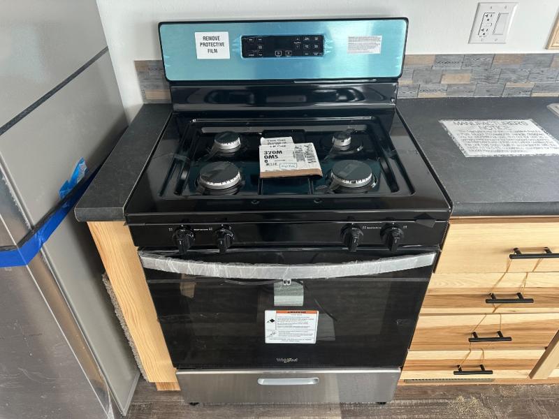 Atwood Comfort Heating, Whirlpool Cooking Range, Whirlpool Refrigerator, Whirlpool Microwave, Rheem Water Heater, First Alert Smoke Alarm, First Alert CO Detector, Safe-T-First LPG Detector, RV Products Air Conditioning, Homaster Tires (215/60D 14.5), Under Floor A/C, Barn Door Hardware, Hardwood Trim Package.