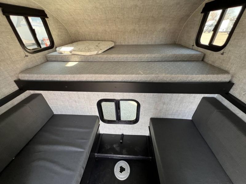 If you've been looking for a lightweight truck camper that will fit even the smallest of trucks, this model is the one! There is a 45" x 72" cabover bunk up front that will provide a great night's rest and a 30" dinette bed for dining and additional sleeping space. The dry weight for this truck camper is 900 lbs., with up to 960 lbs. with options. More available options for this model include a microwave, a Dometic cooler, a roof mounted A/C, electric jacks, and more!